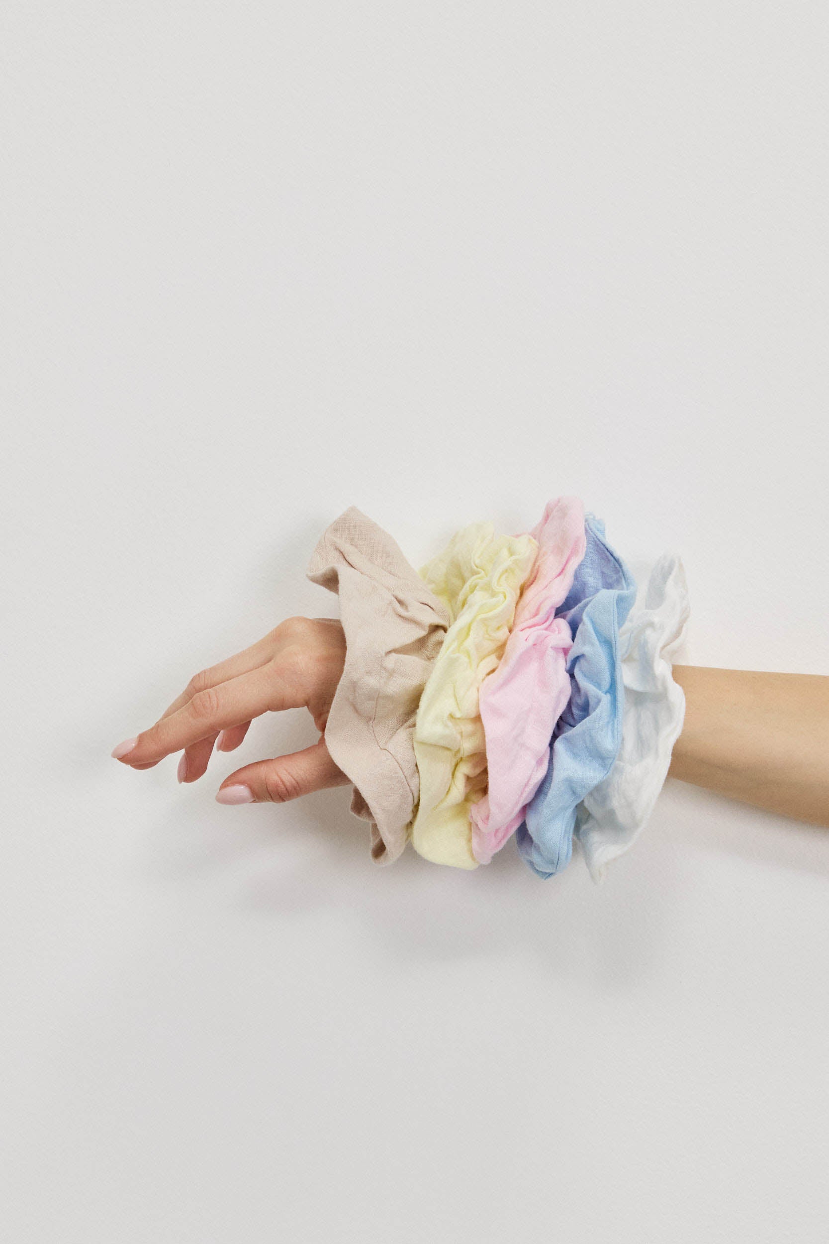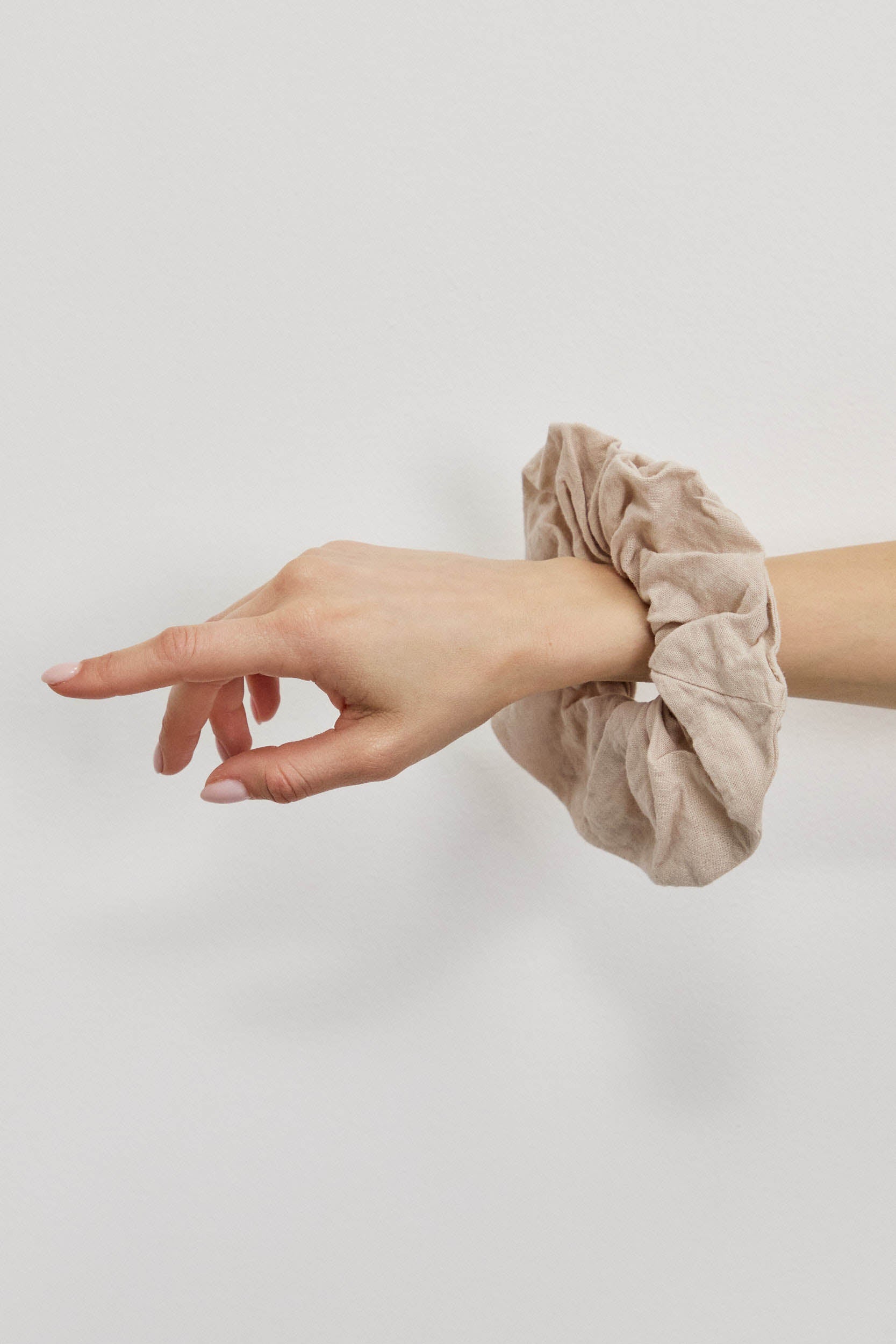 גומיית סקראנצי עשויה שילוב איכותי של פשתן וכותנה, קלילה ונעימה לשיער ומתאימה לשימוש יומיומי.