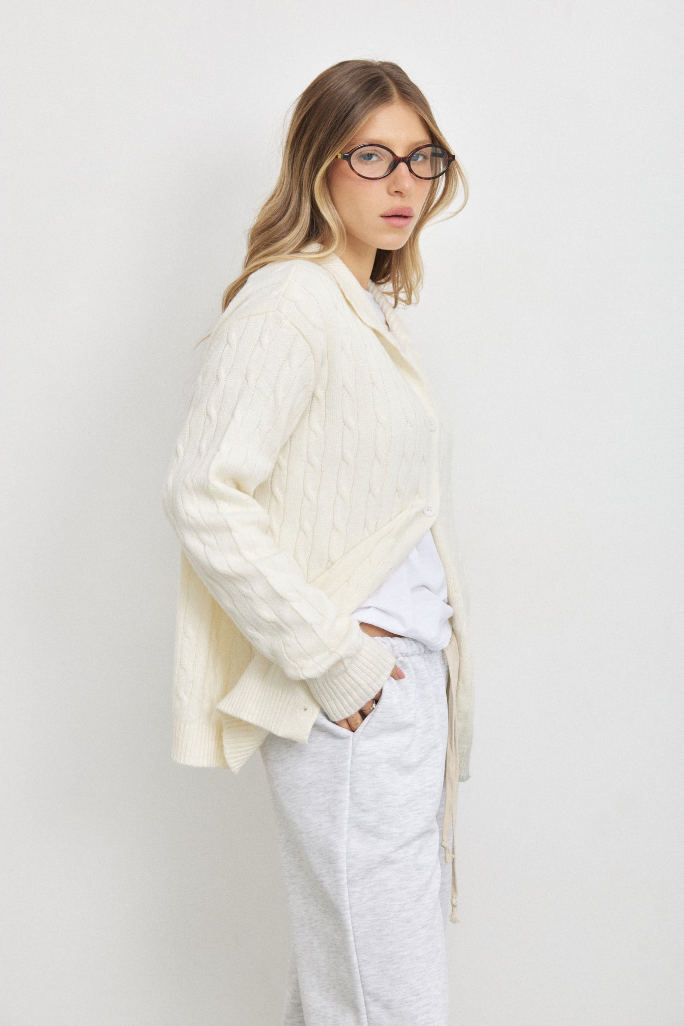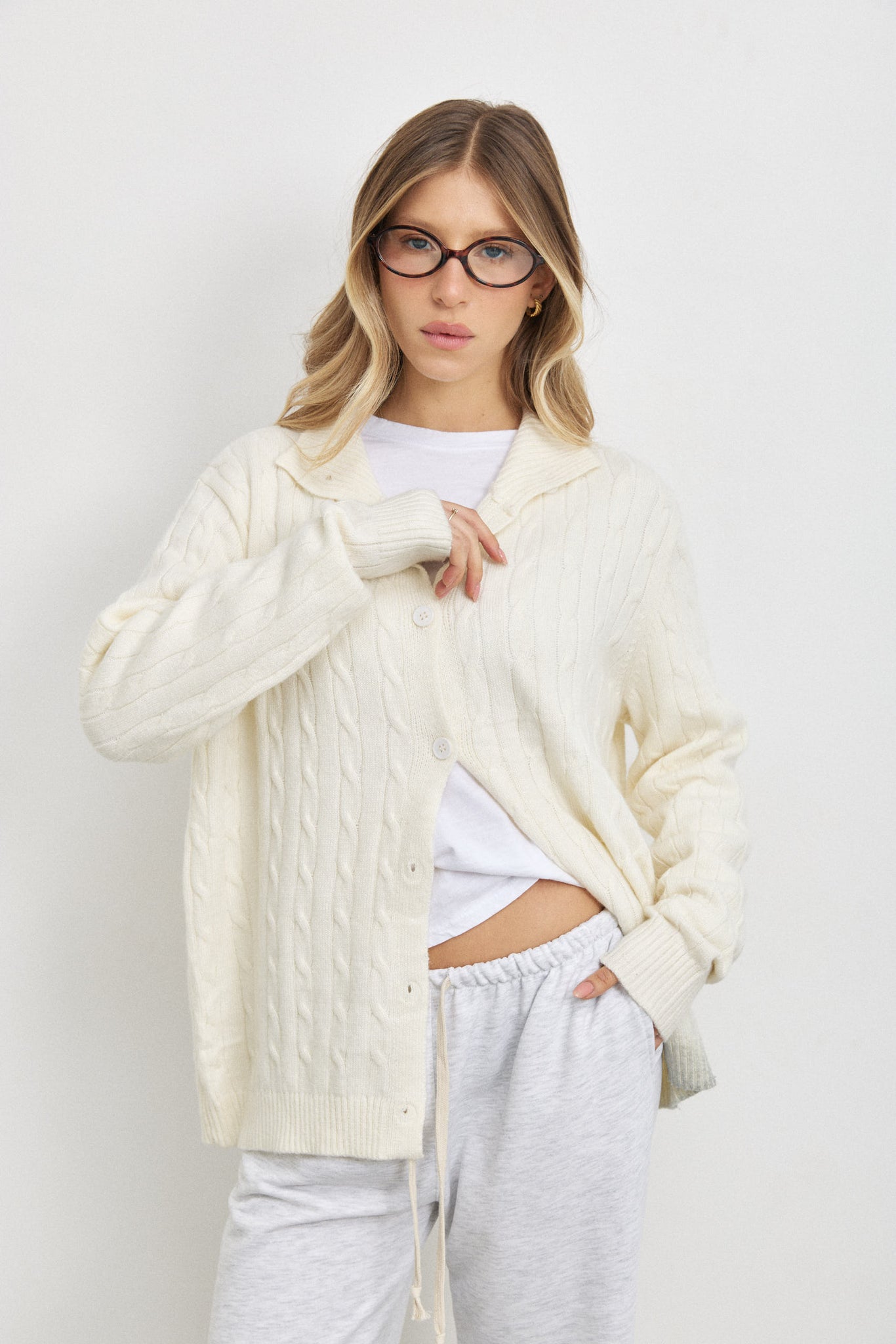 קרדיגן סריג ג׳וליה שמנת
