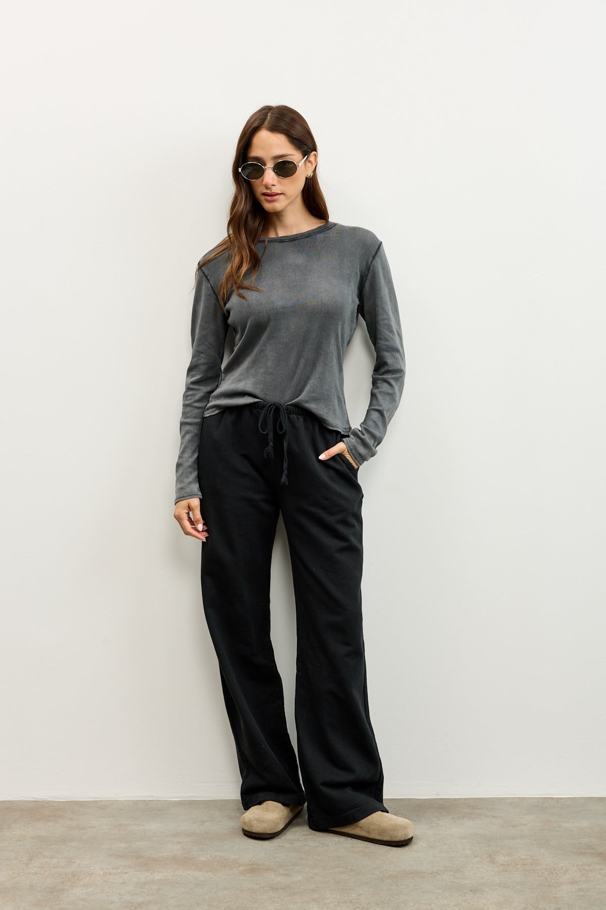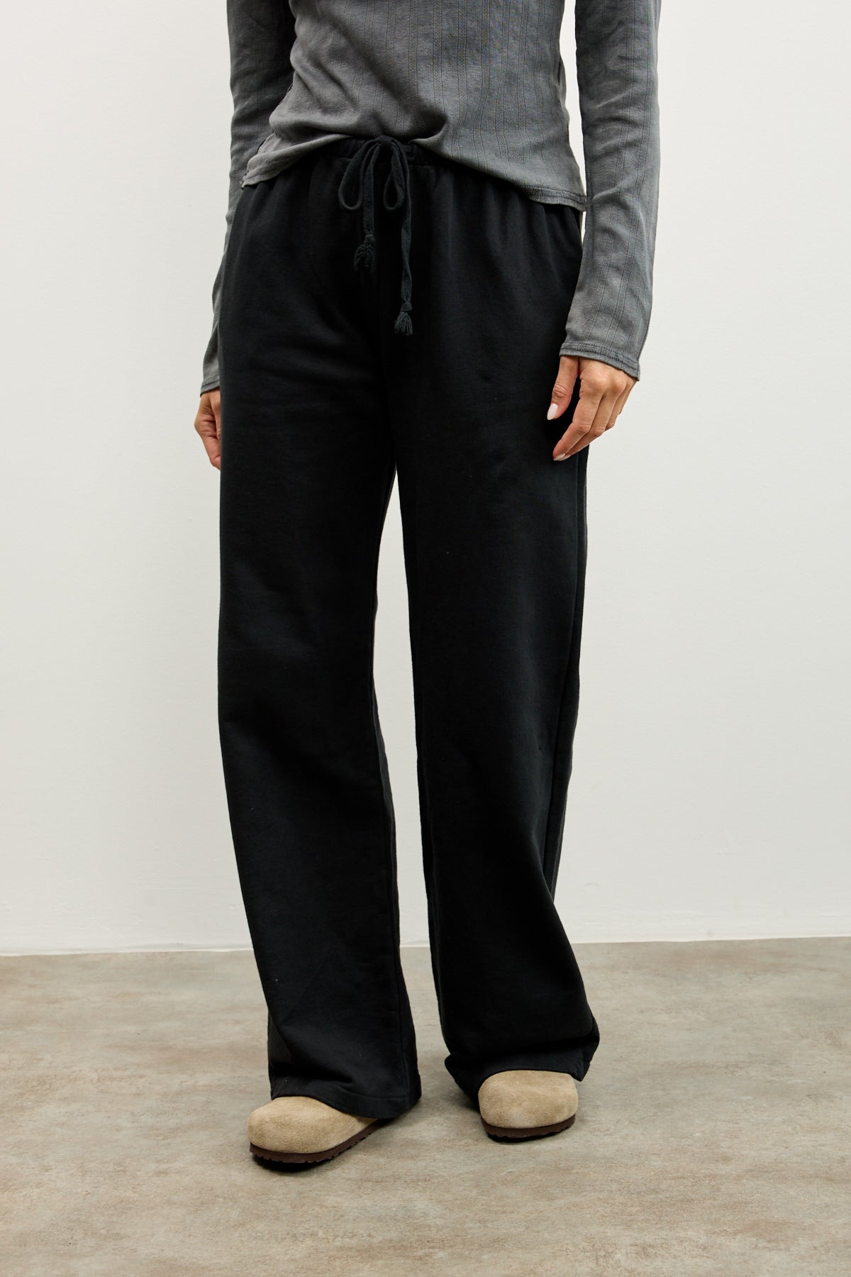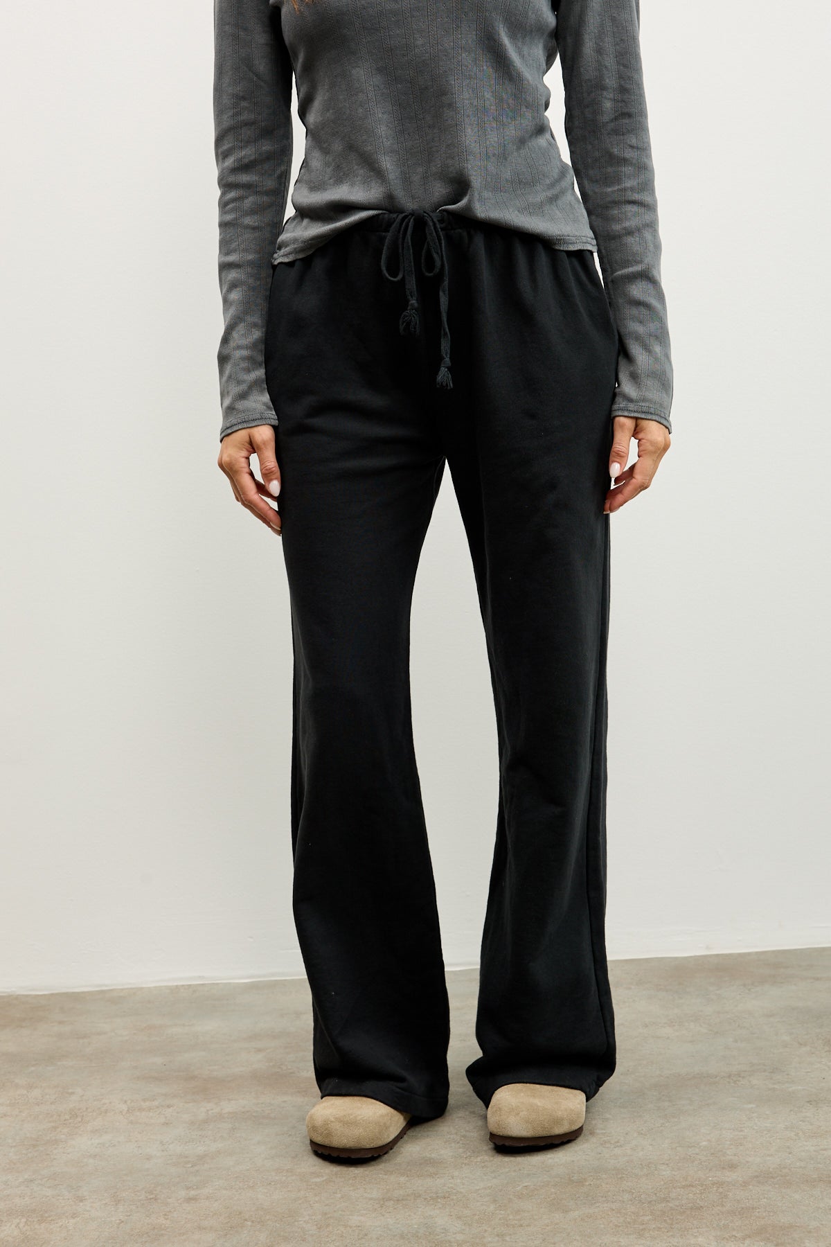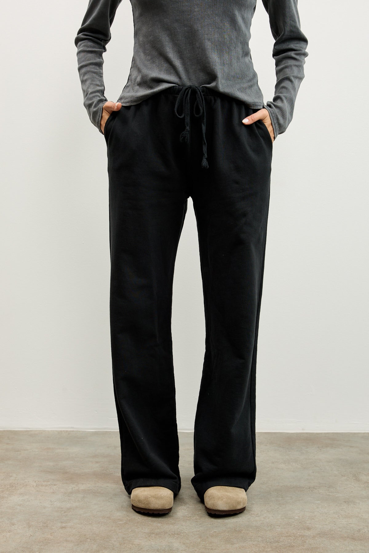 מכנסי טרנינג בייסיק בגזרה ישרה שחור