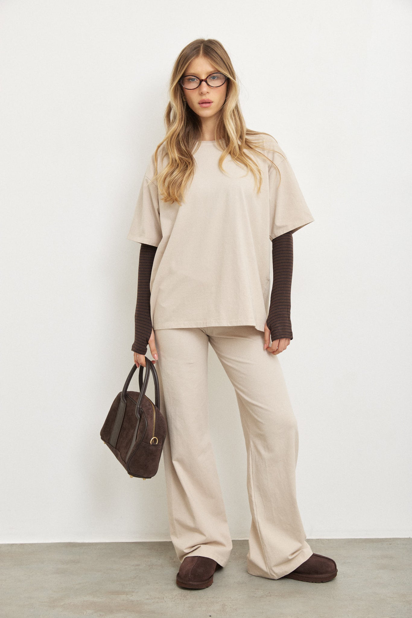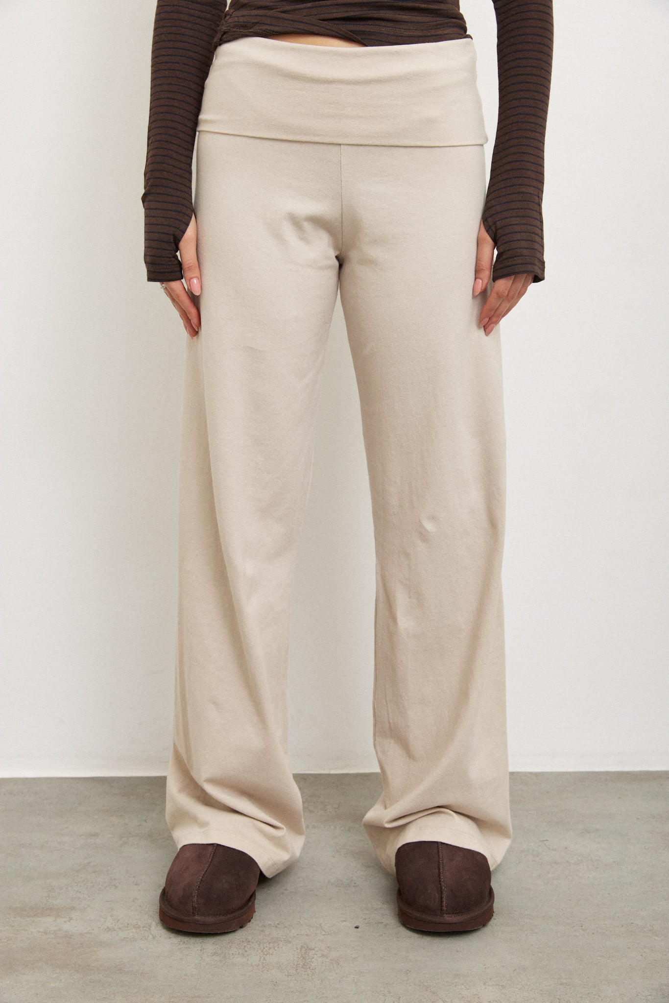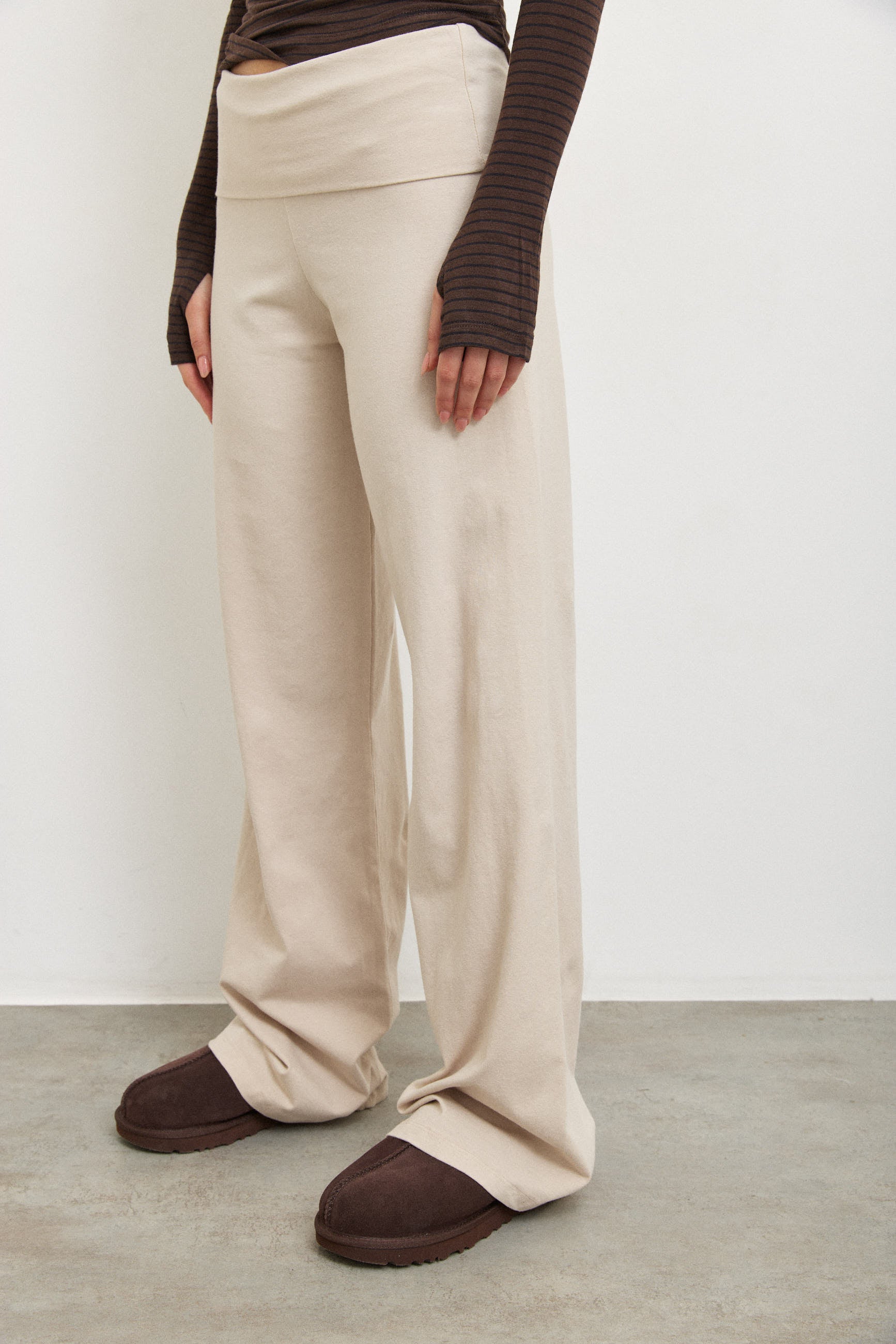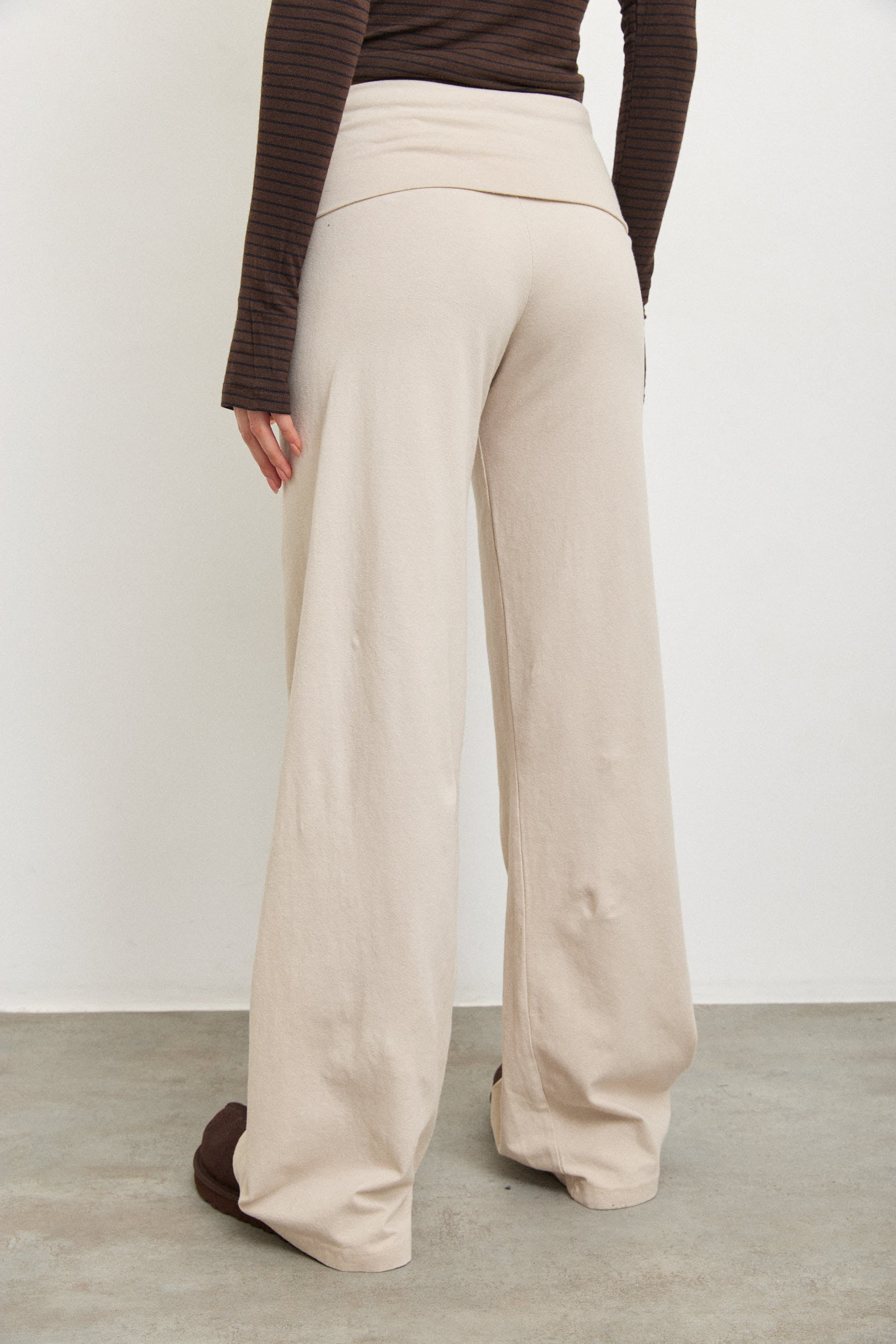 מכנס מתרחב מבד כותנה רך עם מנג'ט בולט ורחב בסגנון ברנדי .
