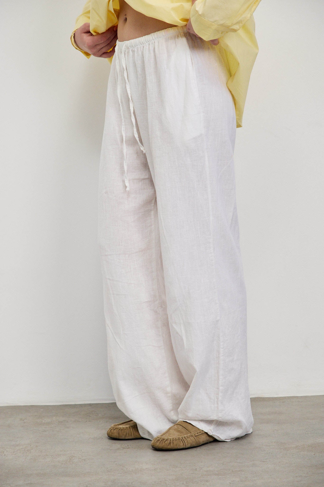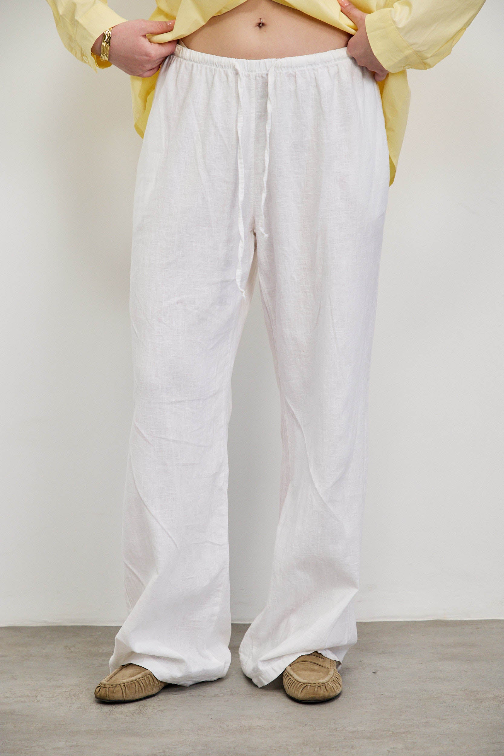 מכנסי פשתן וכותנה נינוחות איטלקית אמיתית