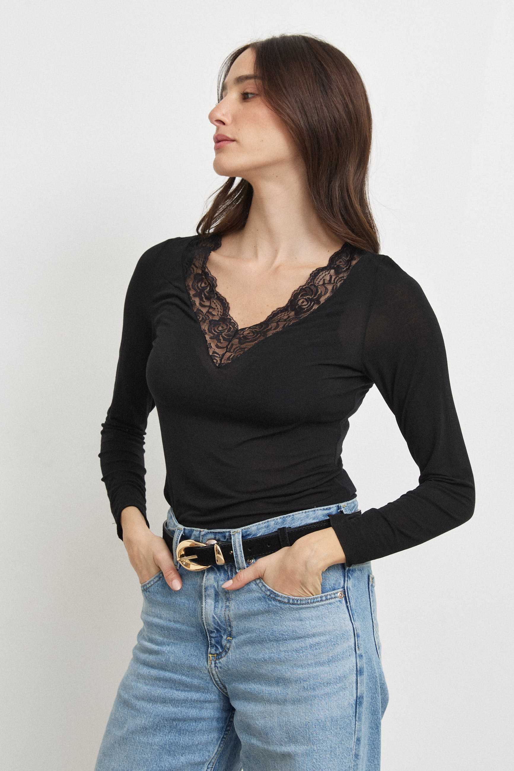 • מפתח V עם תחרה עדינה