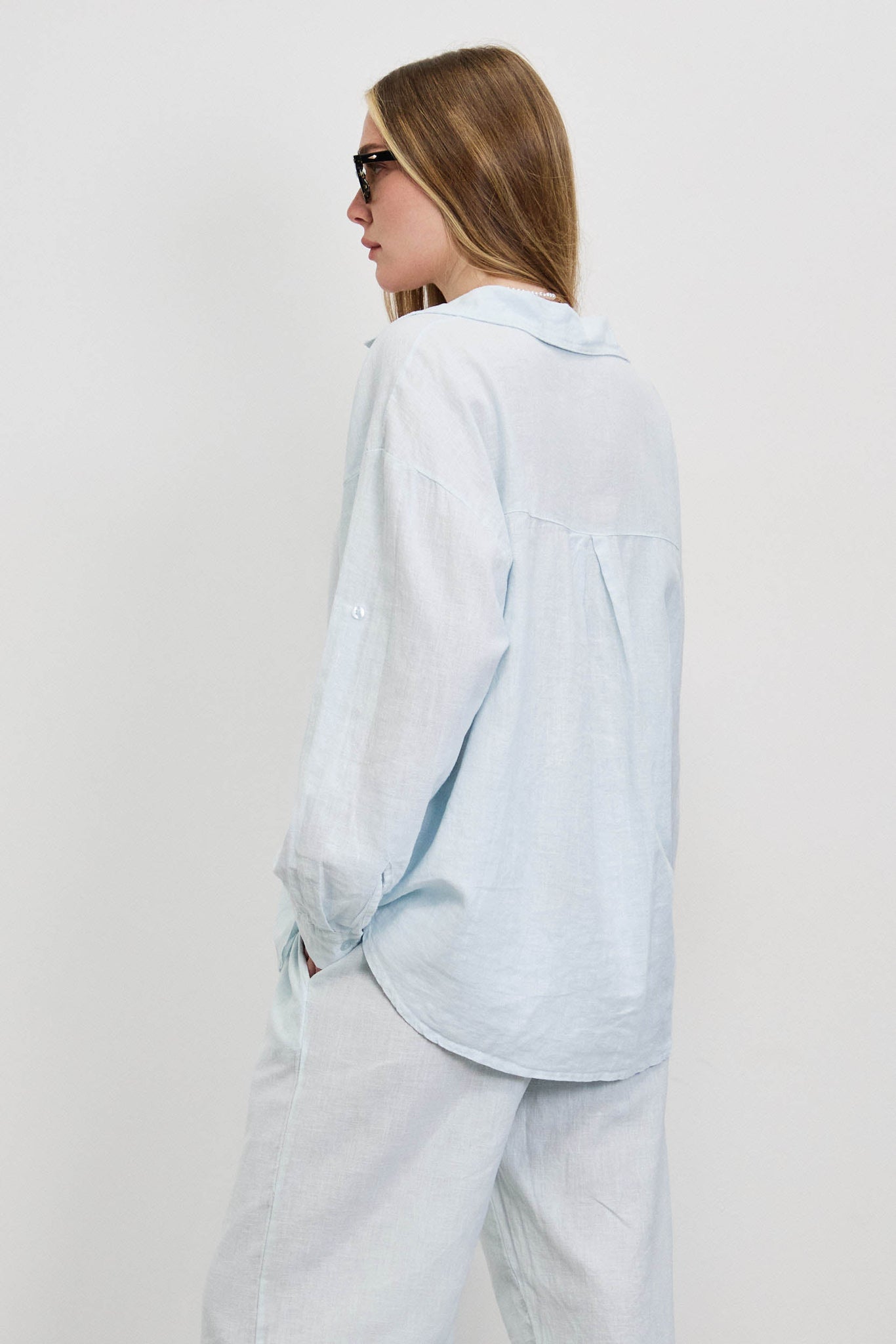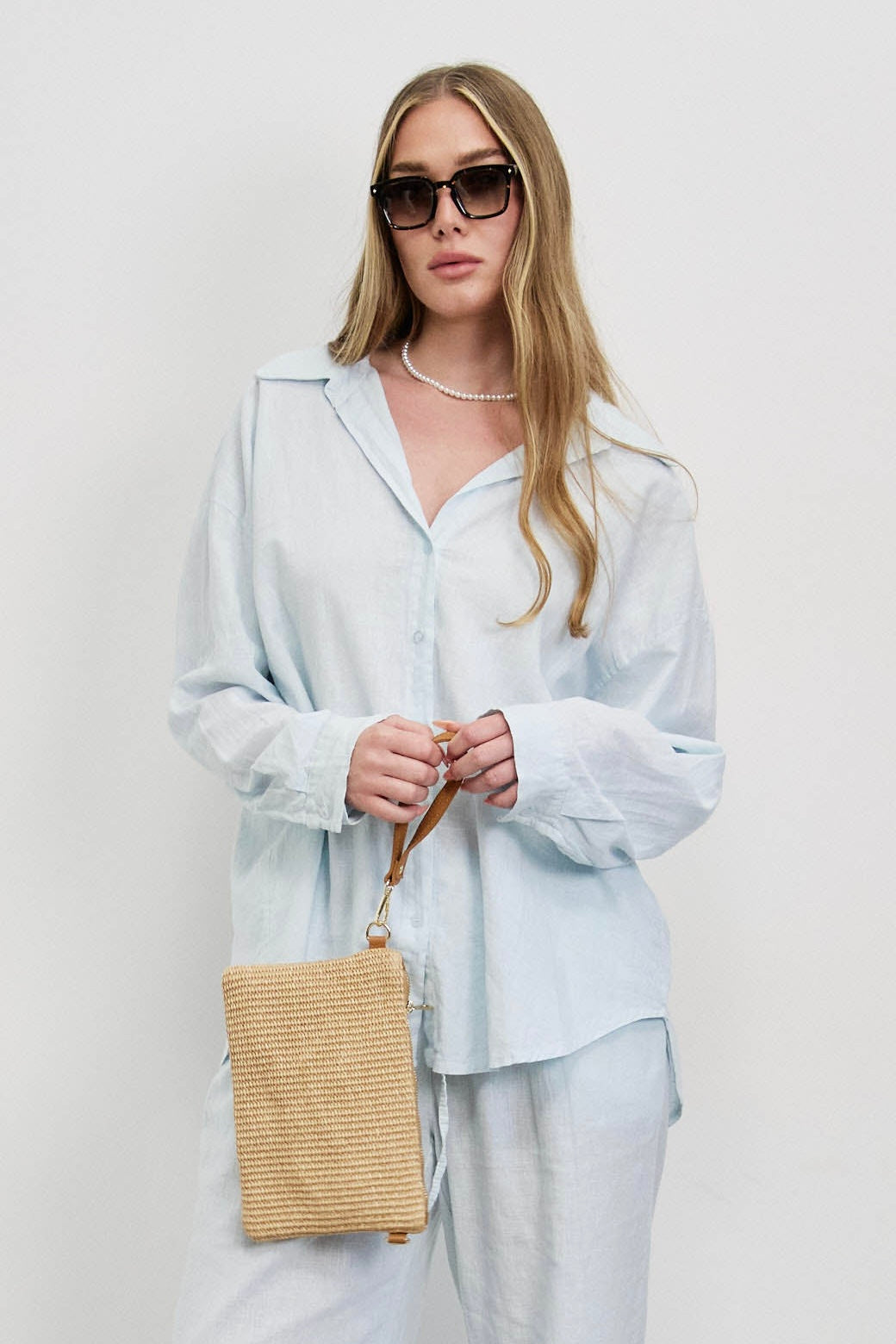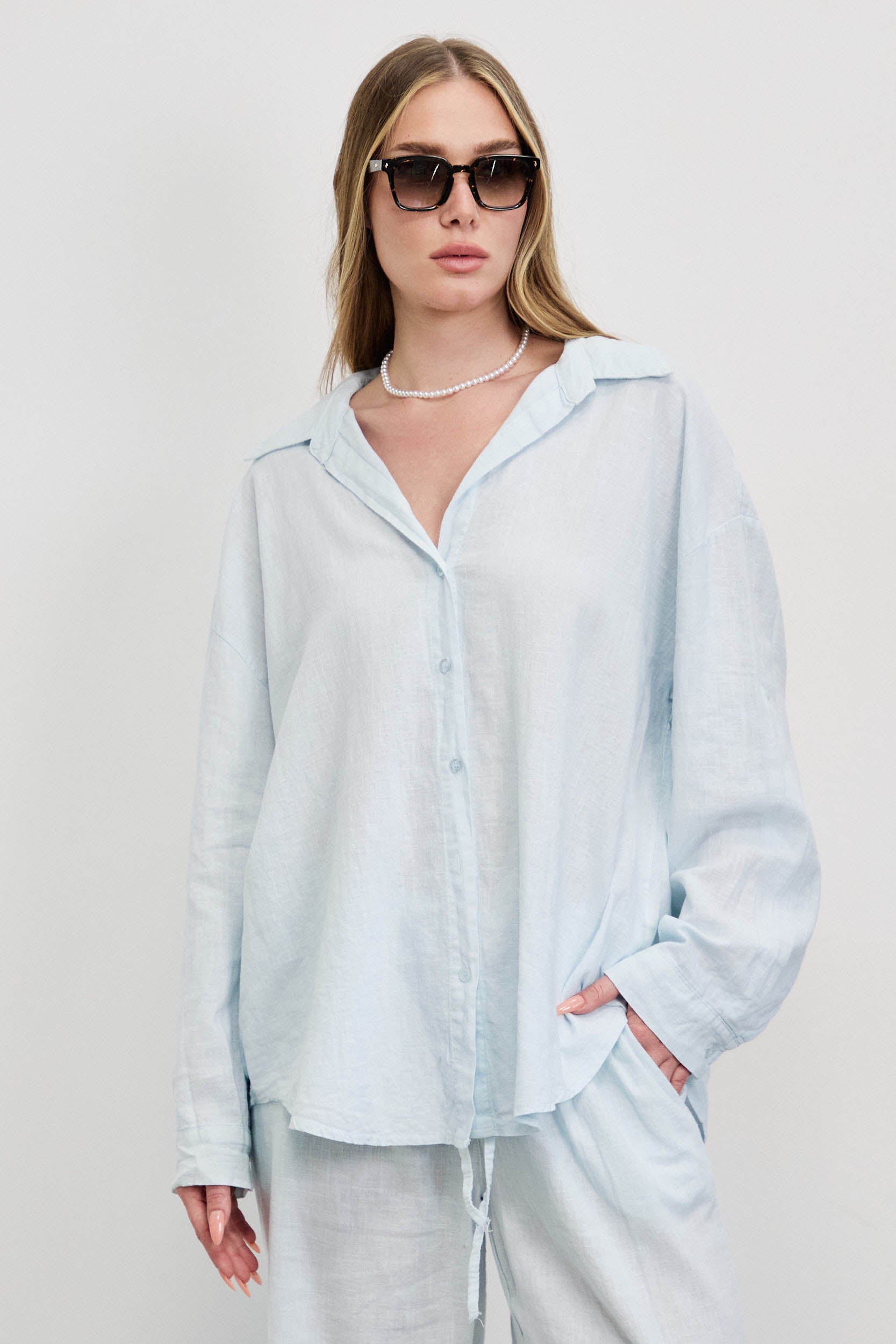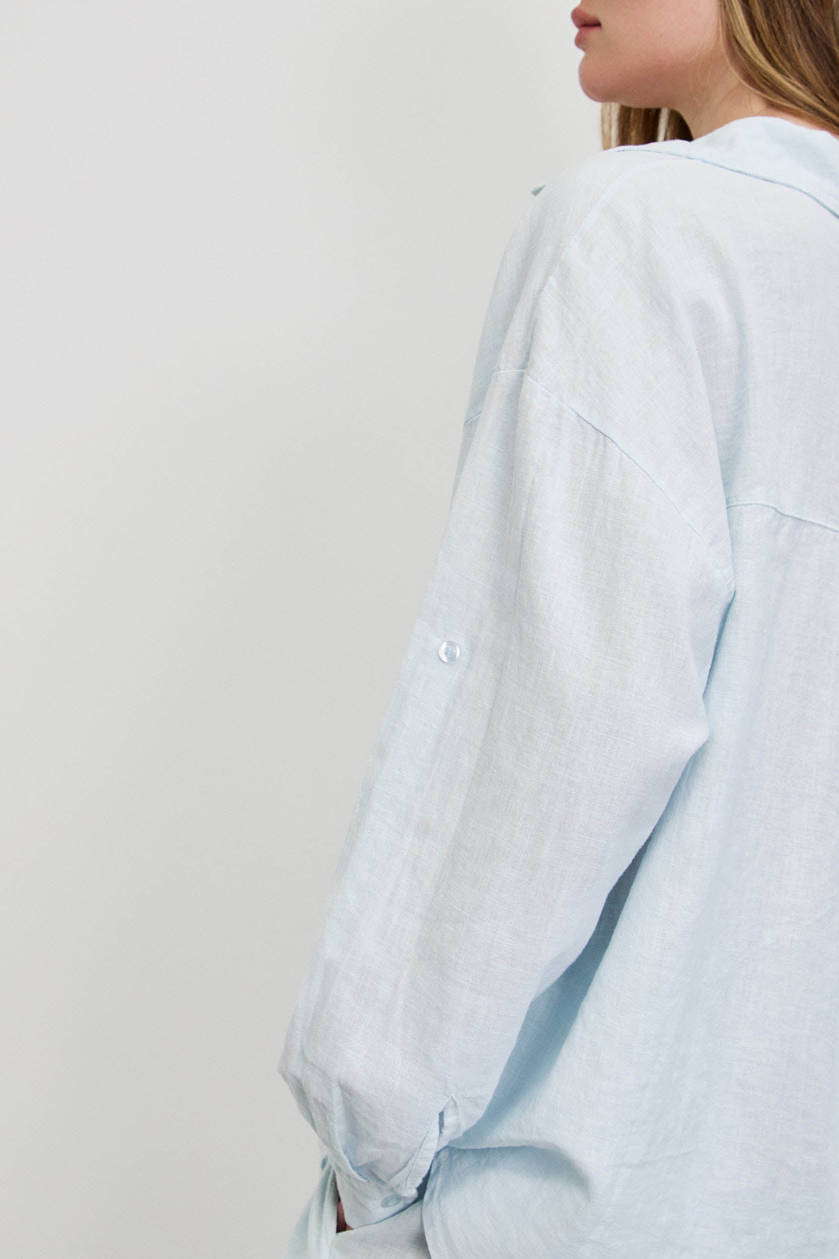 חולצת פשתן כותנה מכופתרת אוברסייז תכלת
