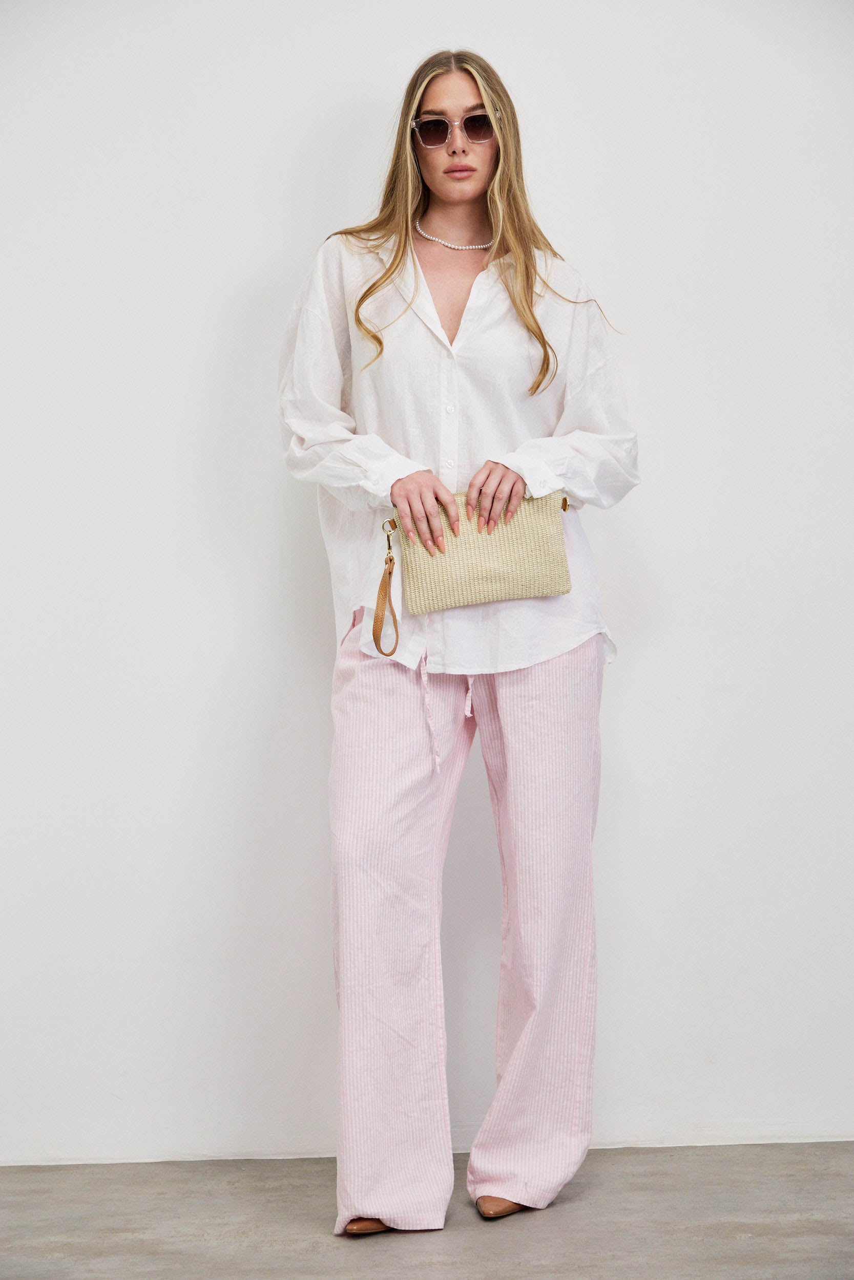 מכנסי פשתן פסים ורוד