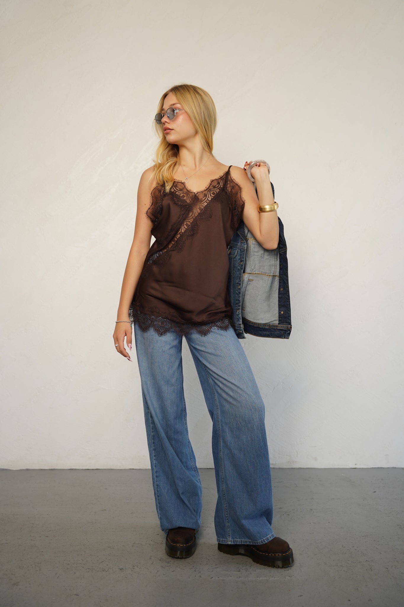 מעוטרת בתחרה רכה באזור המחשוף ובשוליים - בדיוק במינון הנכון כדי להרגיש מיוחדת ואלגנטית בלי להתאמץ.