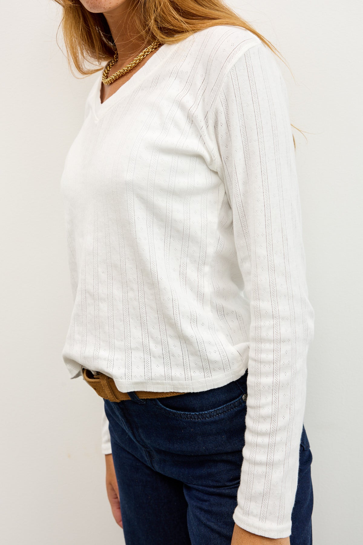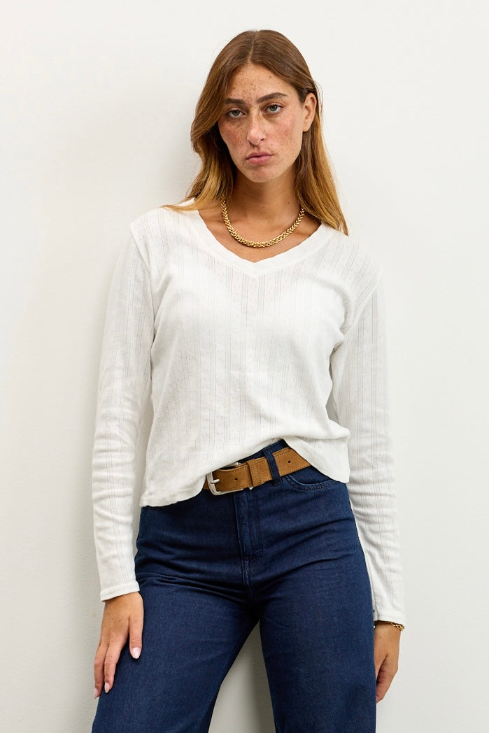 חולצת בייסיק וי בלה טקסטורה חלומית באיכות איטלקית בלתי מתפשרת. חולצת בייסיק קלאסית העשויה 100% כותנה איכותית, בעיצוב טיימלס שישדרג כל מלתחה. הגזרה המדויקת והבד המשובח הופכים אותה לפריט חובה שתוכלי ללבוש מהבוקר עד הערב.