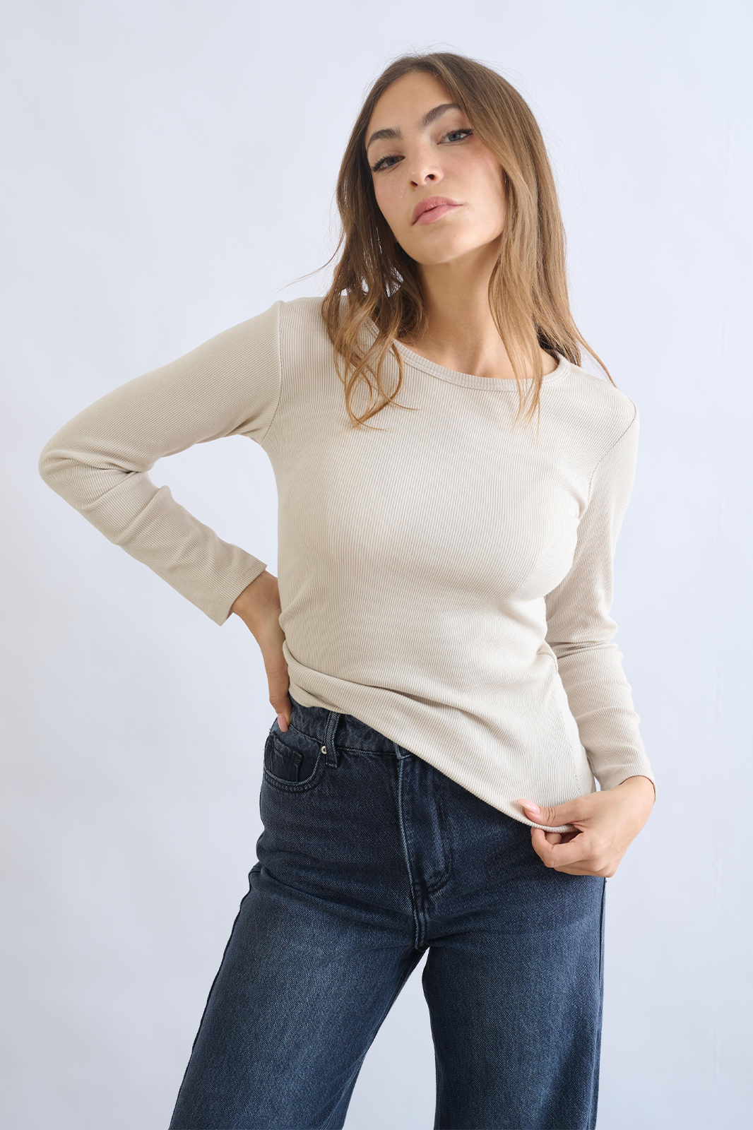 חולצת בייסיק ריב המיוצרת באיטליה מכותנה משובחת. הגזרה הקרובה לגוף והאורך המדויק עד קו המכנס מעניקים מראה נקי ומחמיא. מושלמת לשילוב עם ג'ינס, מכנסיים רחבים או חצאית - פריט שימושי שתמיד כיף ללבוש