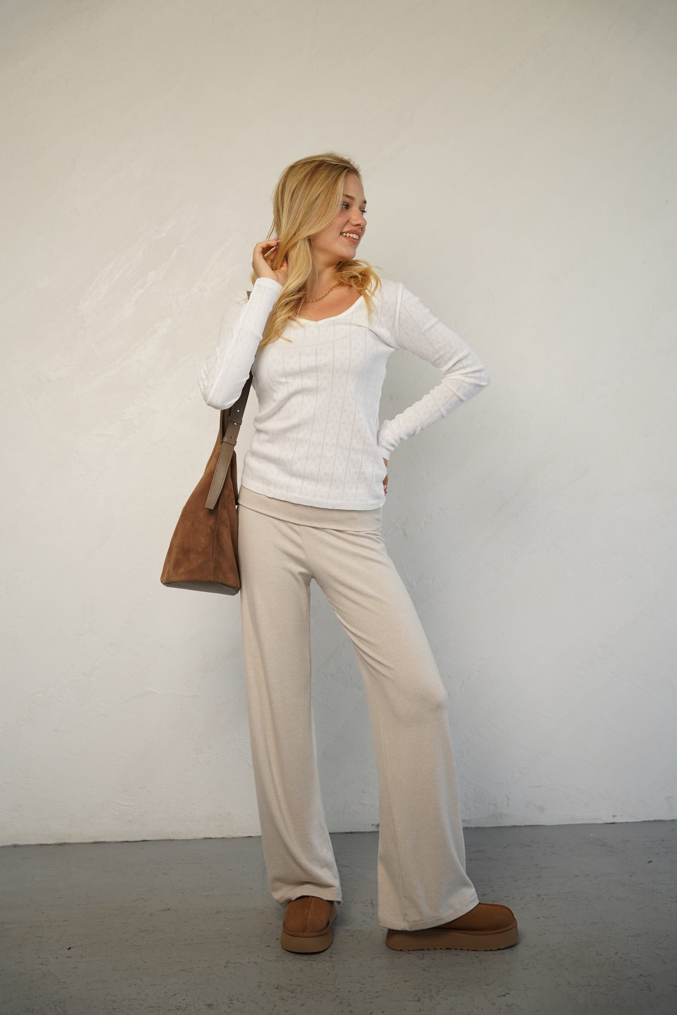 מכנסי ברנדי - בגזרה המוכרת והאהובה עכשיו בבד חדש, רך ואיכותי במיוחד. מיוצרים באיטליה, בגזרה נשפכת ונוחה שמתאימה ליום יום ולשילוב מושלם עם חולצת בייסיק או שכבות קלות. חזרו אלינו בגרסה מדויקת יותר מתמיד.