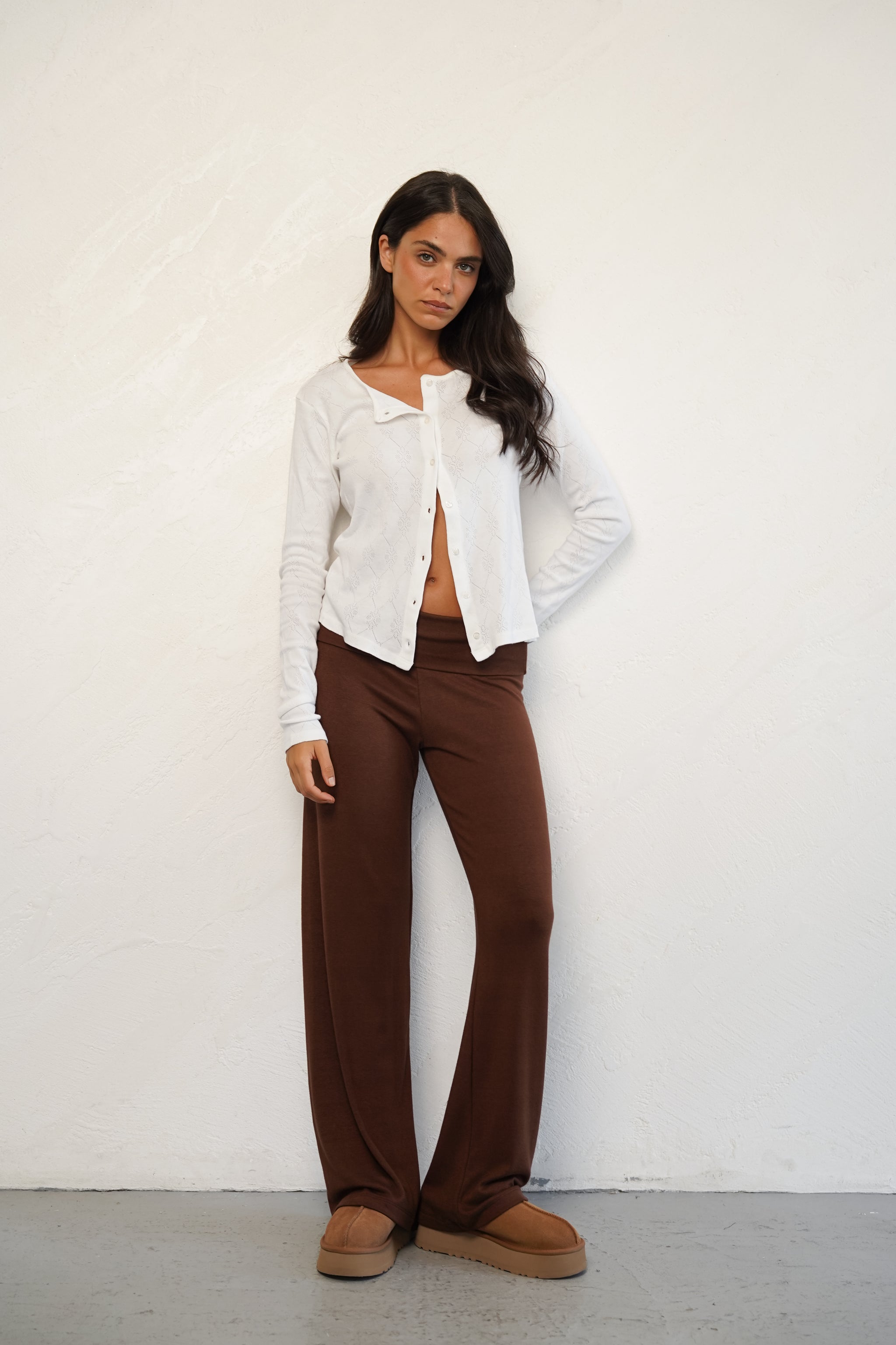 מכנסי ברנדי - בגזרה המוכרת והאהובה עכשיו בבד חדש, רך ואיכותי במיוחד. מיוצרים באיטליה, בגזרה נשפכת ונוחה שמתאימה ליום יום ולשילוב מושלם עם חולצת בייסיק או שכבות קלות. חזרו אלינו בגרסה מדויקת יותר מתמיד.