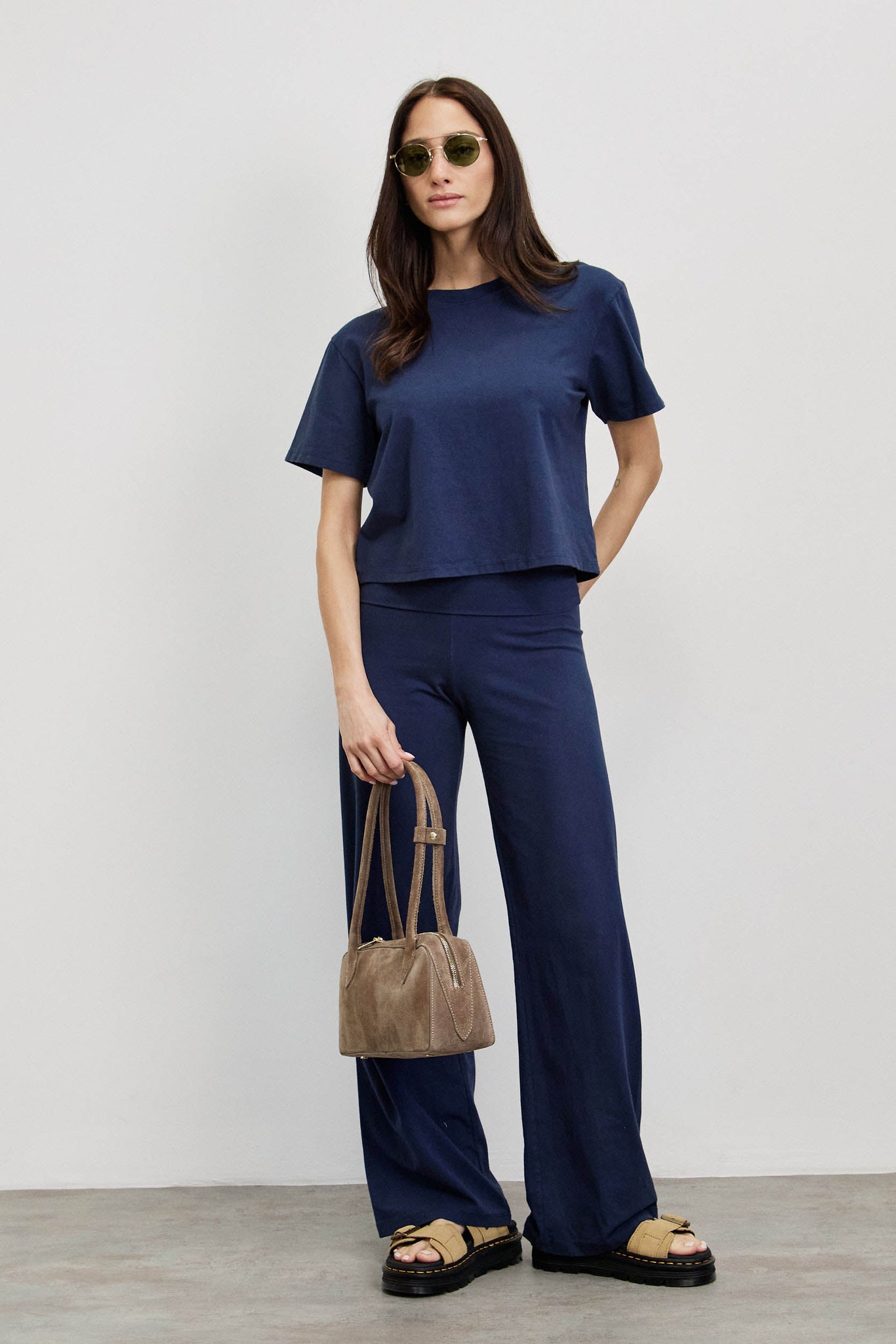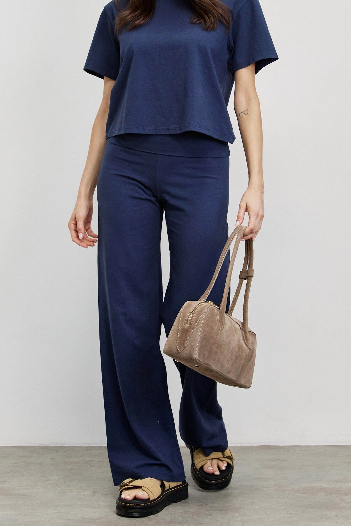 עשויים מתערובת כותנה איכותית עם לייקרה, שמעניקה למכנס גמישות מושלמת וישיבה מדויקת על הגוף. הגומי הרחב במותן מחזיק בצורה מחמיאה ונוחה, והנפילה הישרה יוצרת מראה נקי, ארוך ואלגנטי.