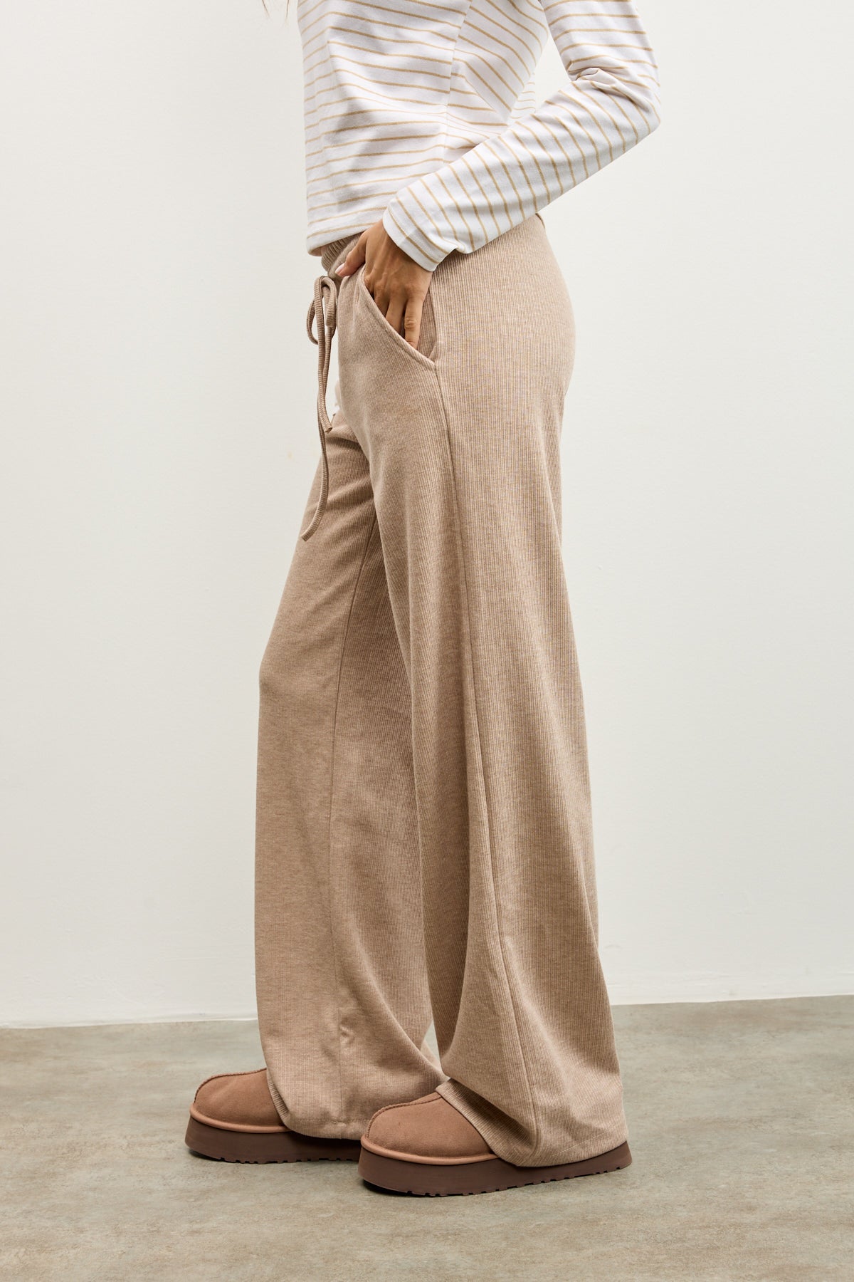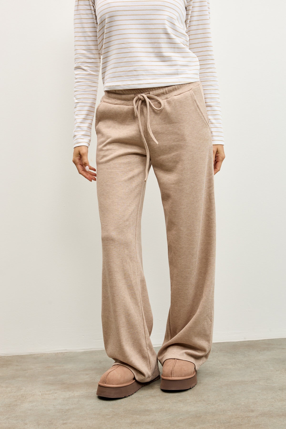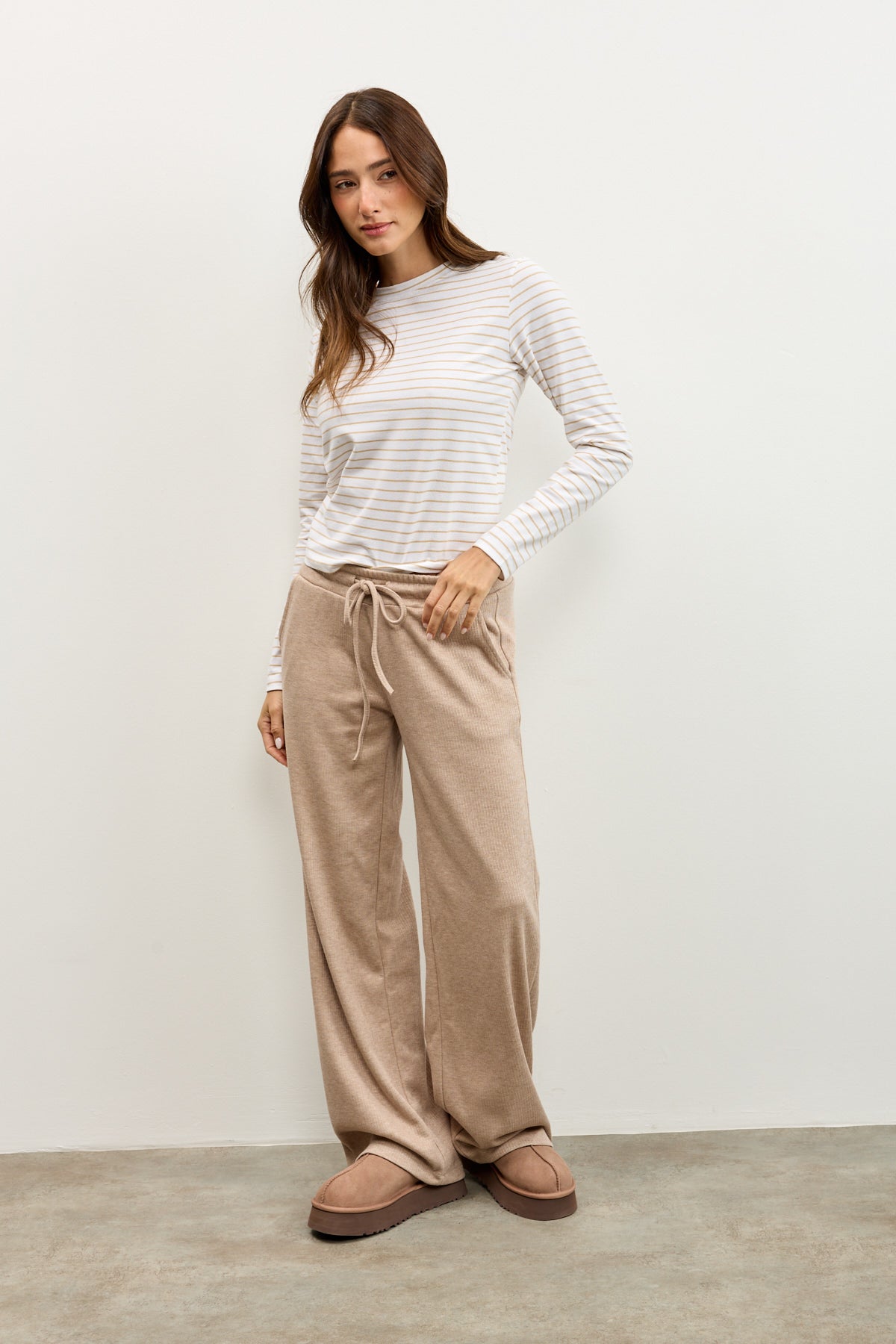 החלק העליון של המכנס כולל גומי נעים במותן ושרוך התאמה המאפשר ללבוש את המכנס במותן גבוהה או נמוכה לפי איך שאוהבים.