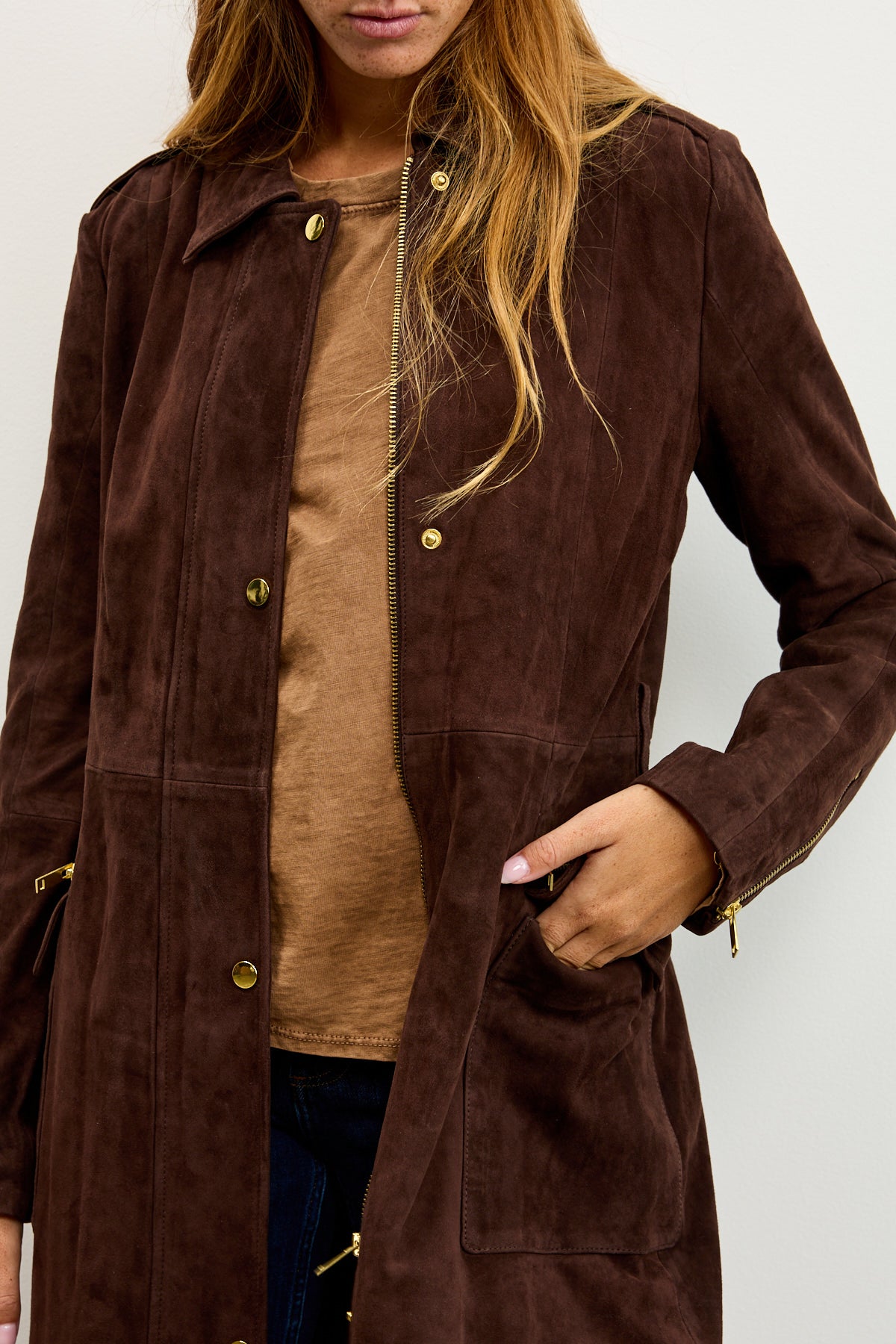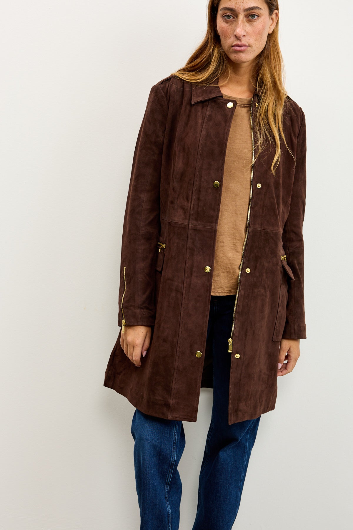 EVI מעיל טרנץ' זמש באורך ברך