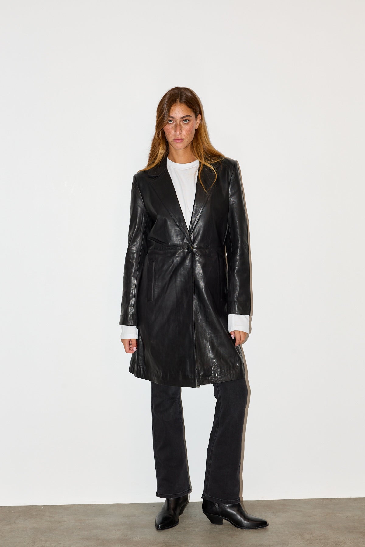 מעיל עור טרנץ׳ MELINDA OVERSIZE KNEE LENGTH LEATHER BLAZER