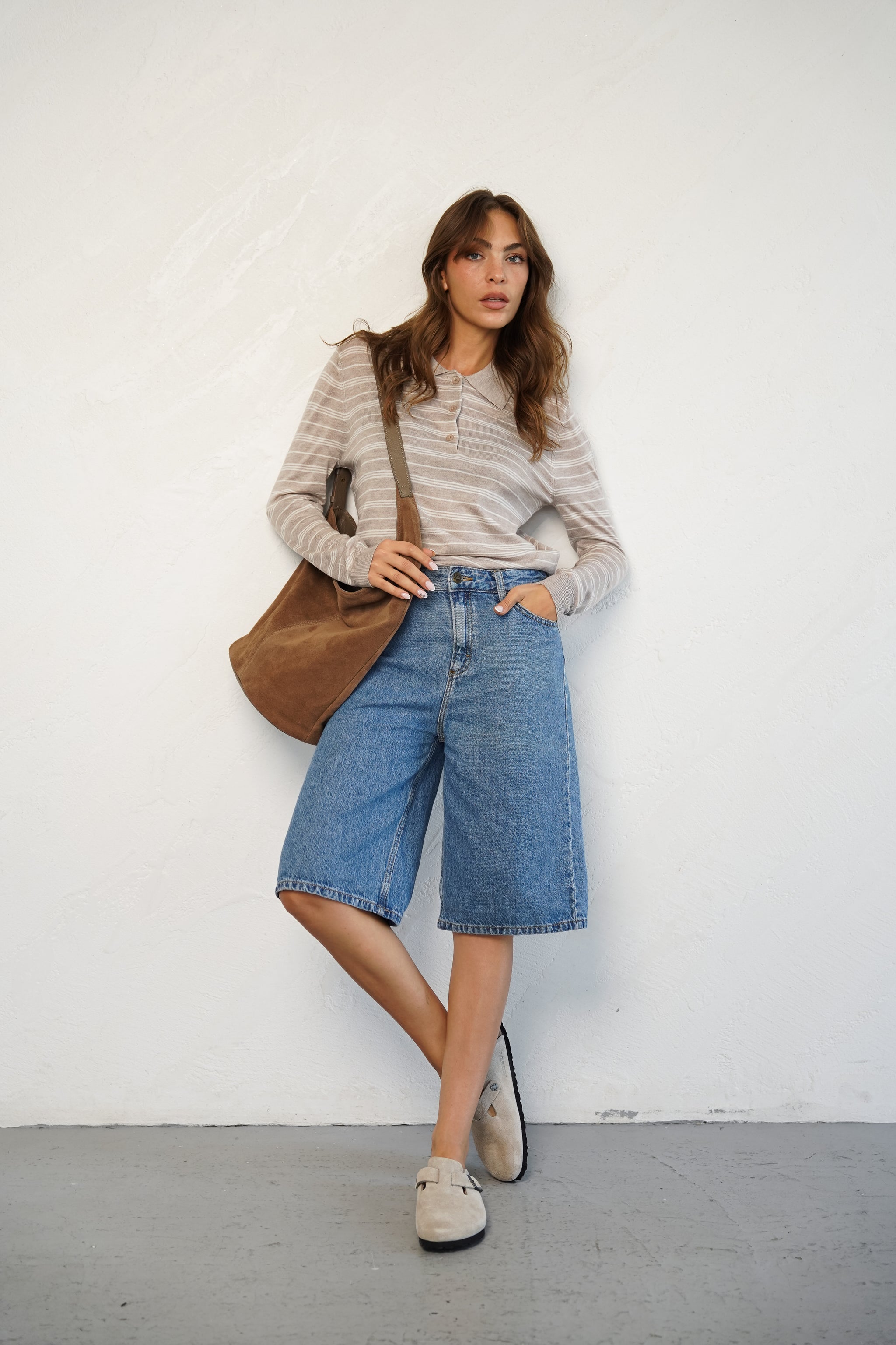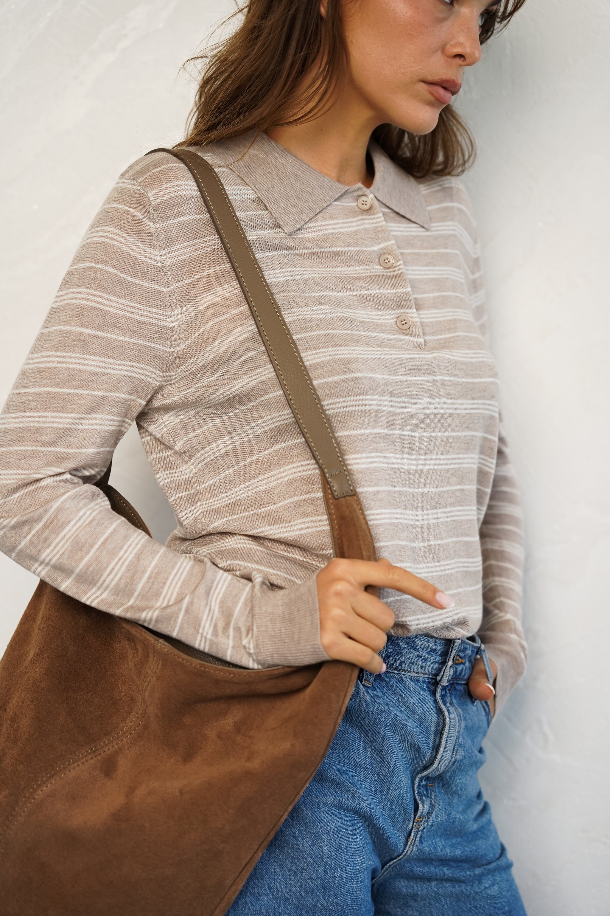 הדפס הפסים הקלאסי מעניק טאץ’ מחויט אך קליל כזה שעובד נהדר גם ליום עבודה וגם לשילוב עם ג’ינס וסניקרס בסופ”ש.