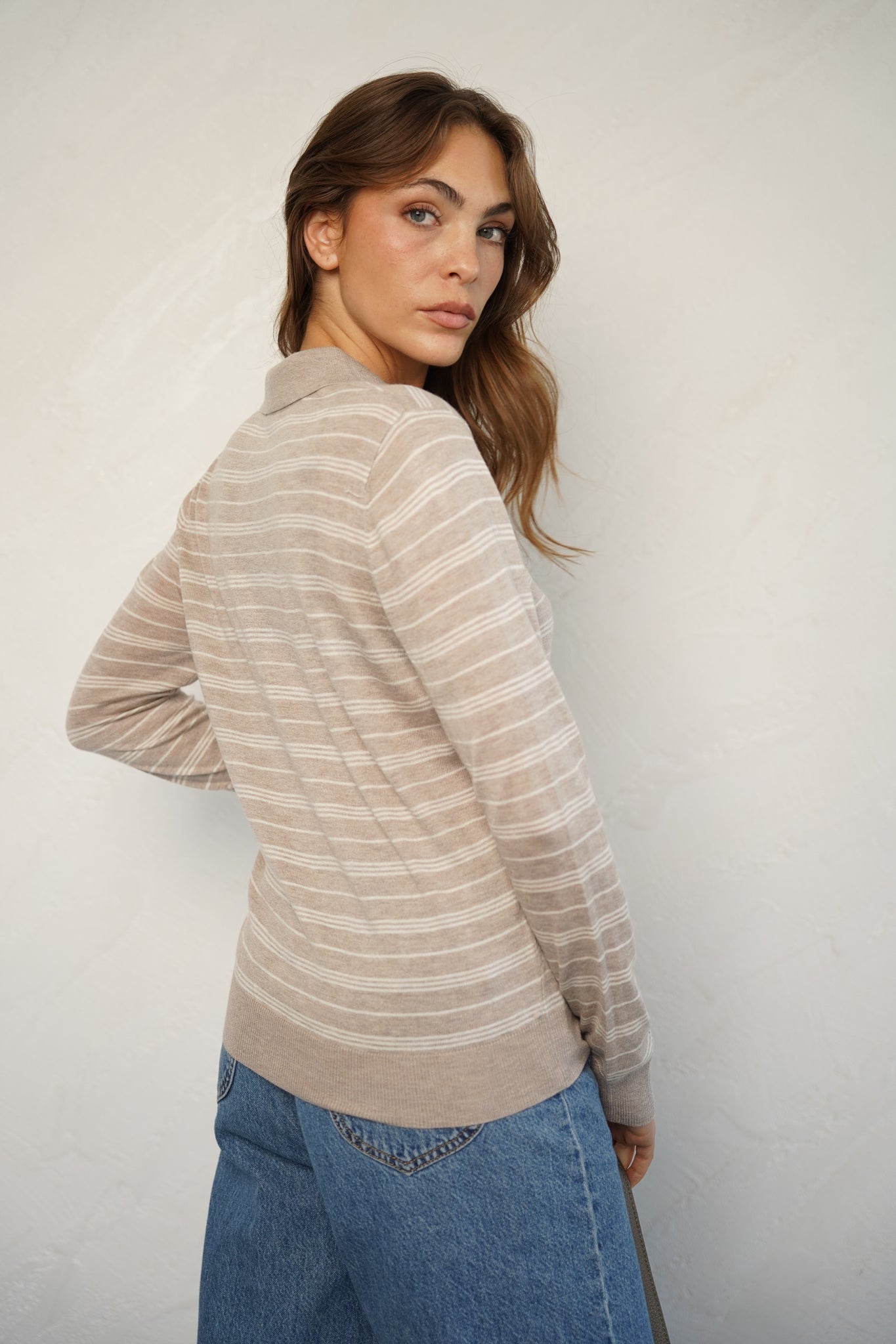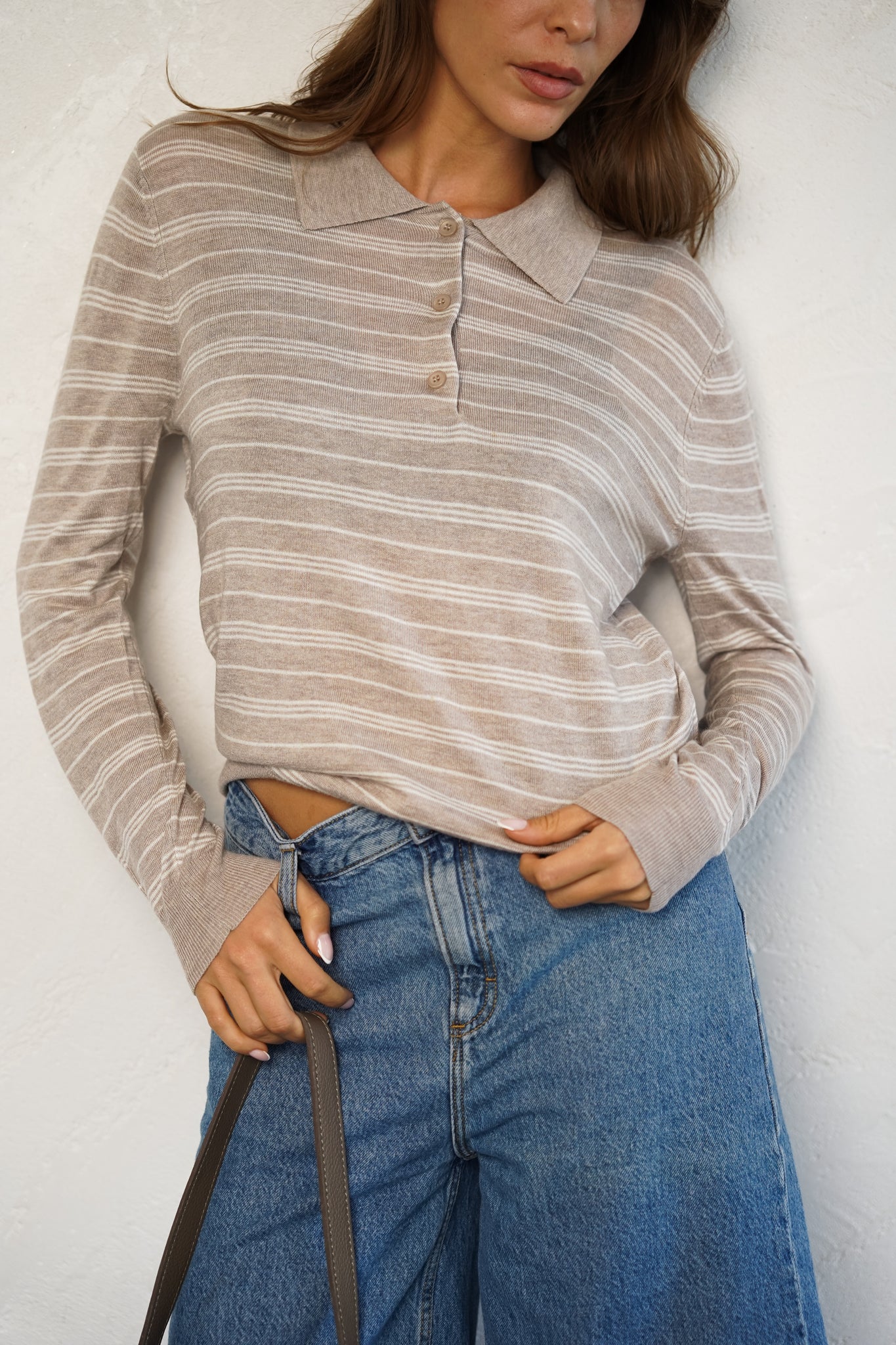 סריג פולו איכותי עם צווארון וכפתורים, עשוי בד רך, נעים ומדויק בגזרה.