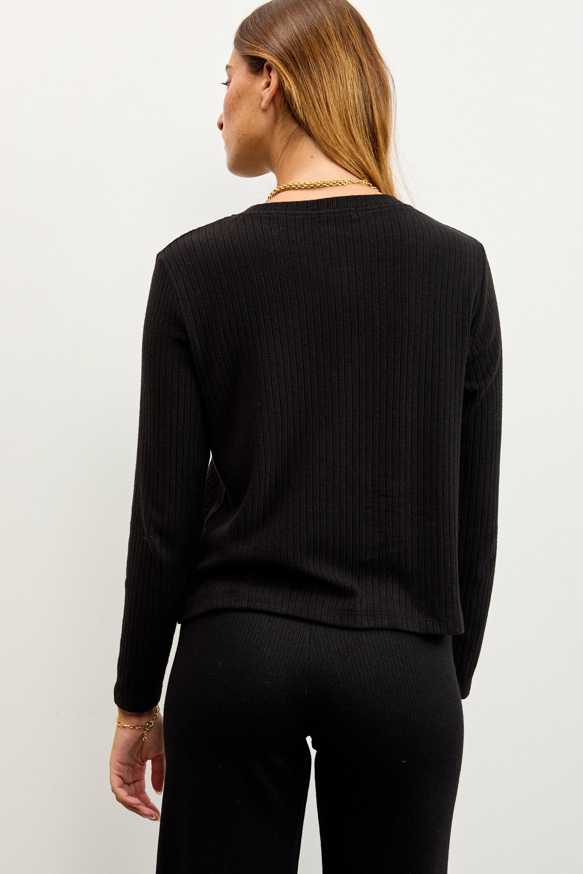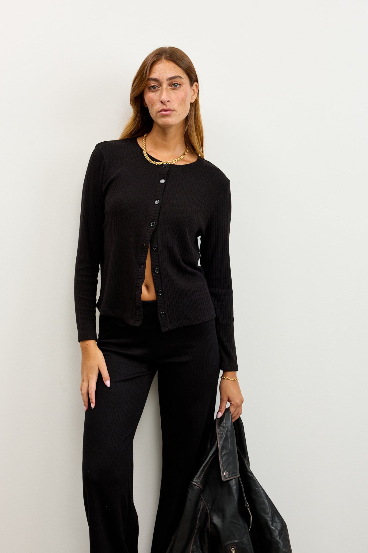 קרדיגן סריג ריב דק ונעים, מיוצר באיטליה מבד איכותי שמרגיש מושלם על הגו.