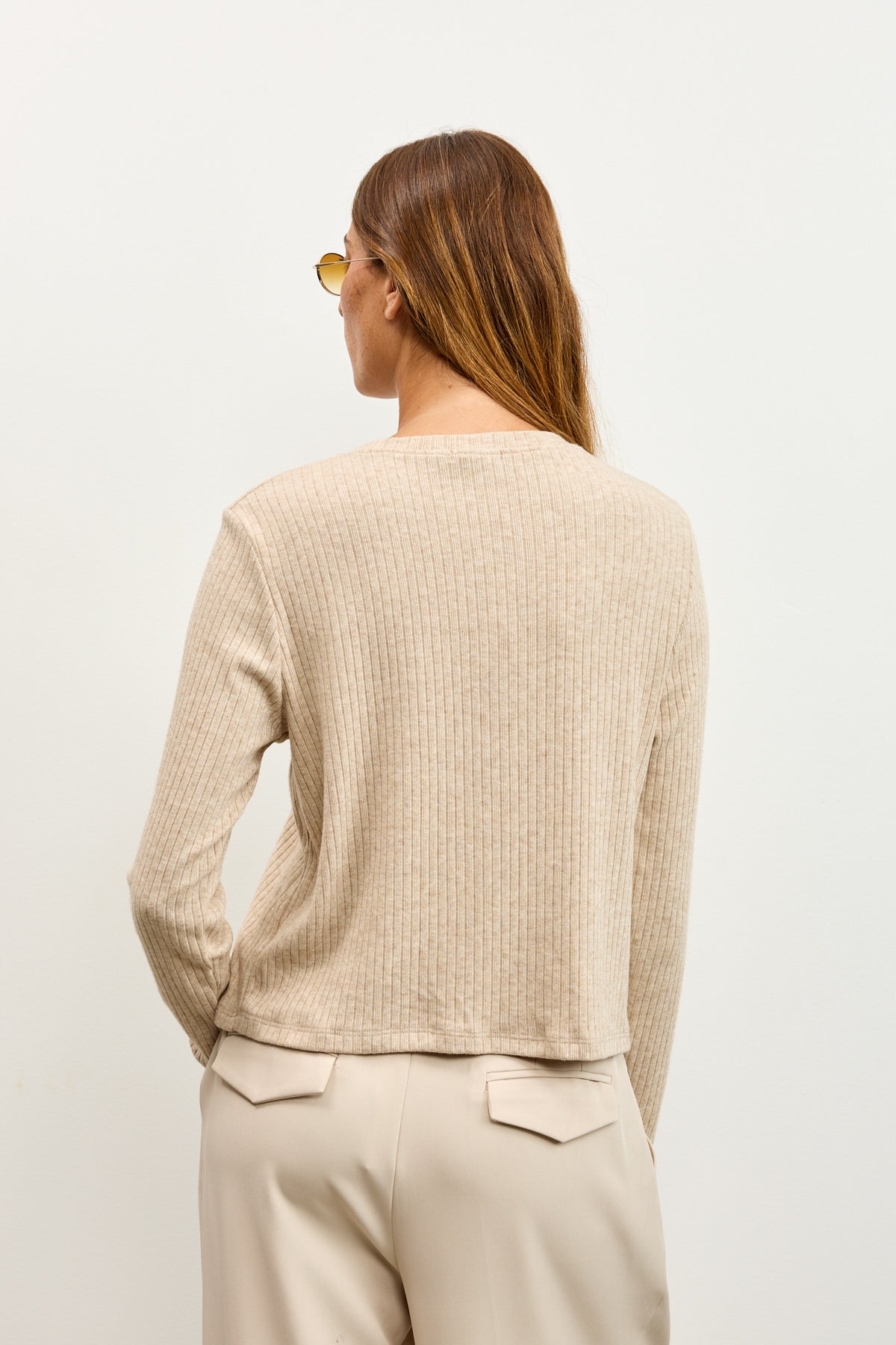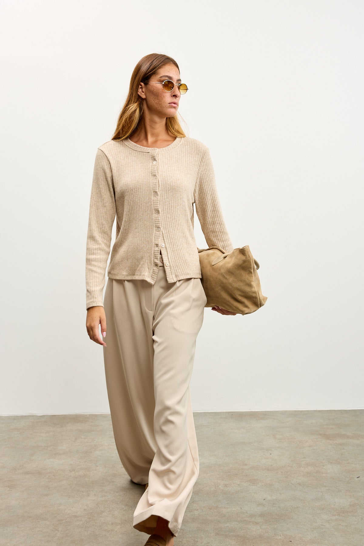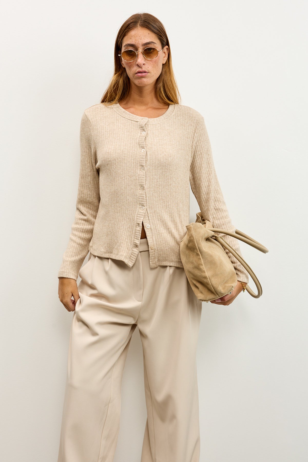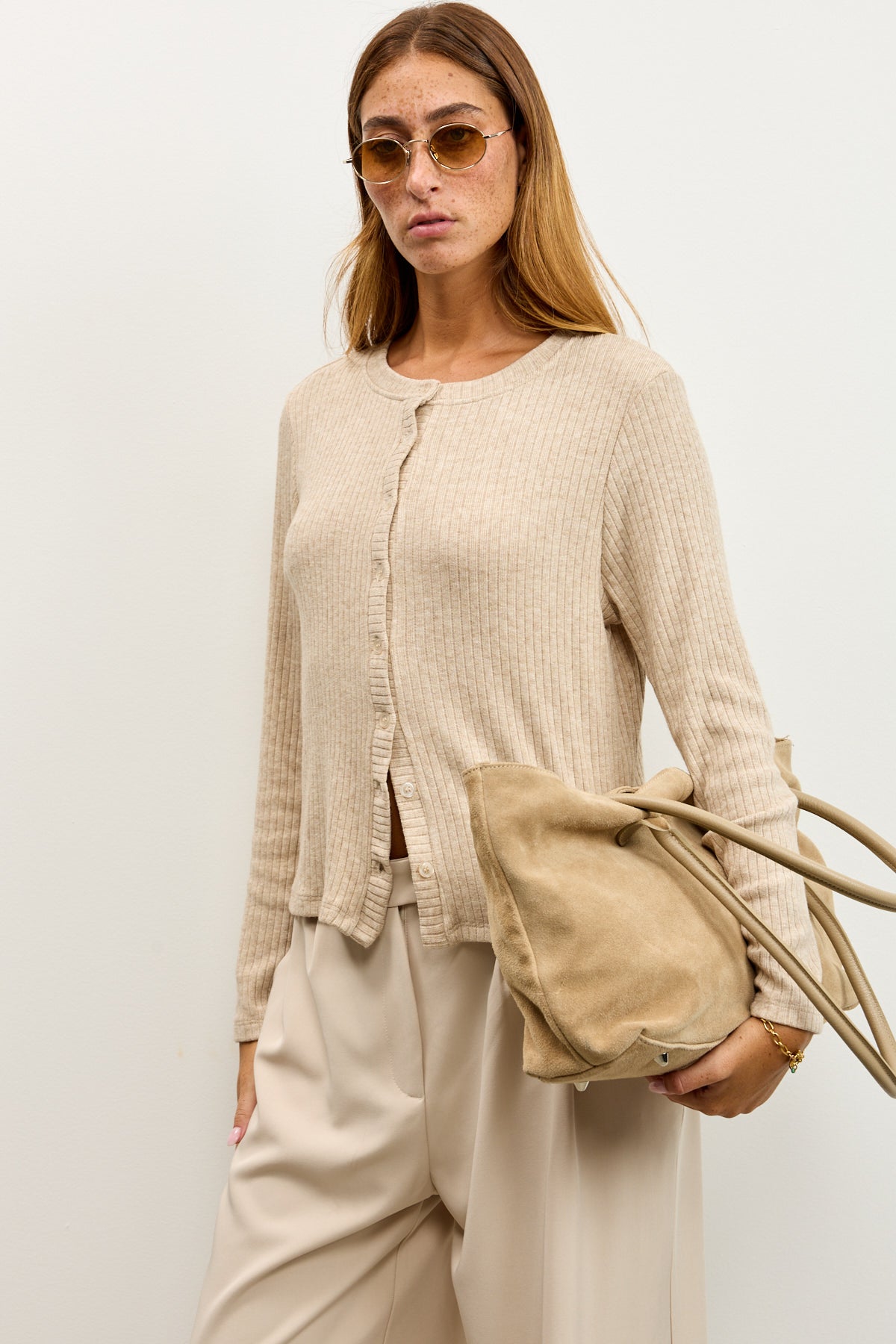 קרדיגן סריג ריב דק ונעים, מיוצר באיטליה מבד איכותי שמרגיש מושלם על הגוף.