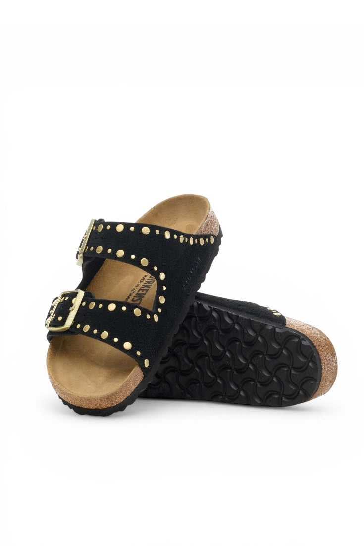 ה-BIRKENSTOCK ARIZONA הוא קלאסיקה אמיתית ששימחה גברים ונשים במשך עשרות שנים. הסנדל הפשוט עם שני הרצועות נחשב לעיצוב על-זמני וצבר מעמד איקוני הודות לנוחות המפורסמת שלו. הגרסה הזו כוללת ניטים ממוקמים בדיוק, ללא גב, היושבים בתוך העור בתהליך ייצור מוקפד, כך שהם לא חודרים עמוק מדי ונותרים בלתי מורגשים בעת נעילת הנעל. מדובר בפריט מושך עין! החלק העליון עשוי זמש רך המחבק את הרגל כמו עור שני.