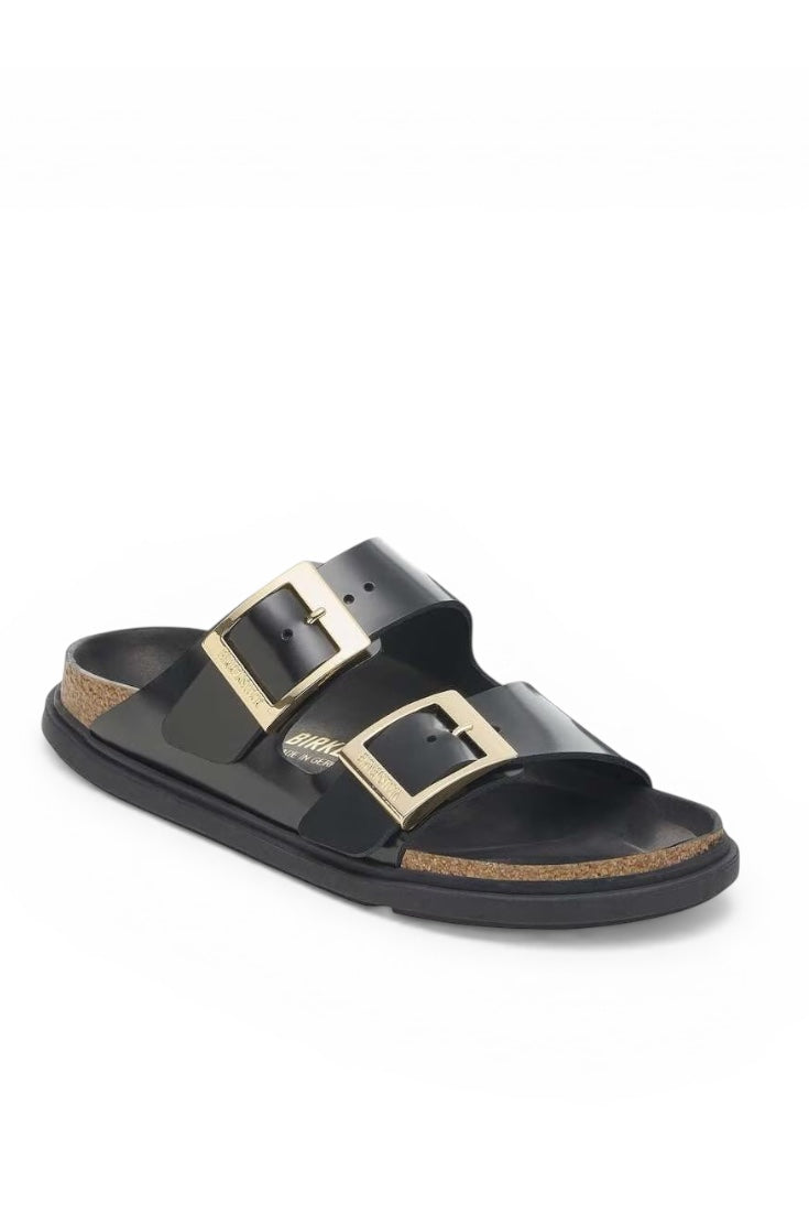 כפכפי בירקנשטוק דגם אריזונה דרופלט אבזם בצבע שחור - סנדל קלאסי ואיקוני מבית BIRKENSTOCK.