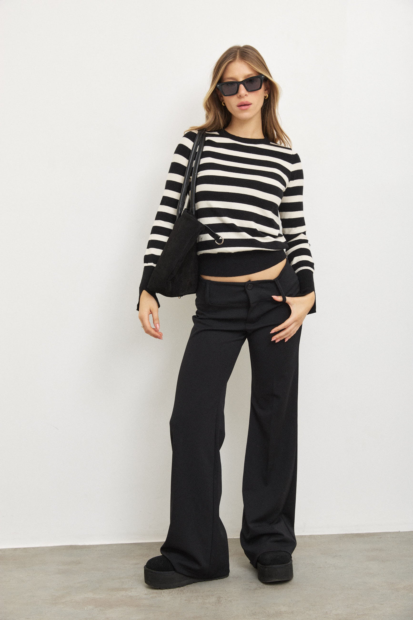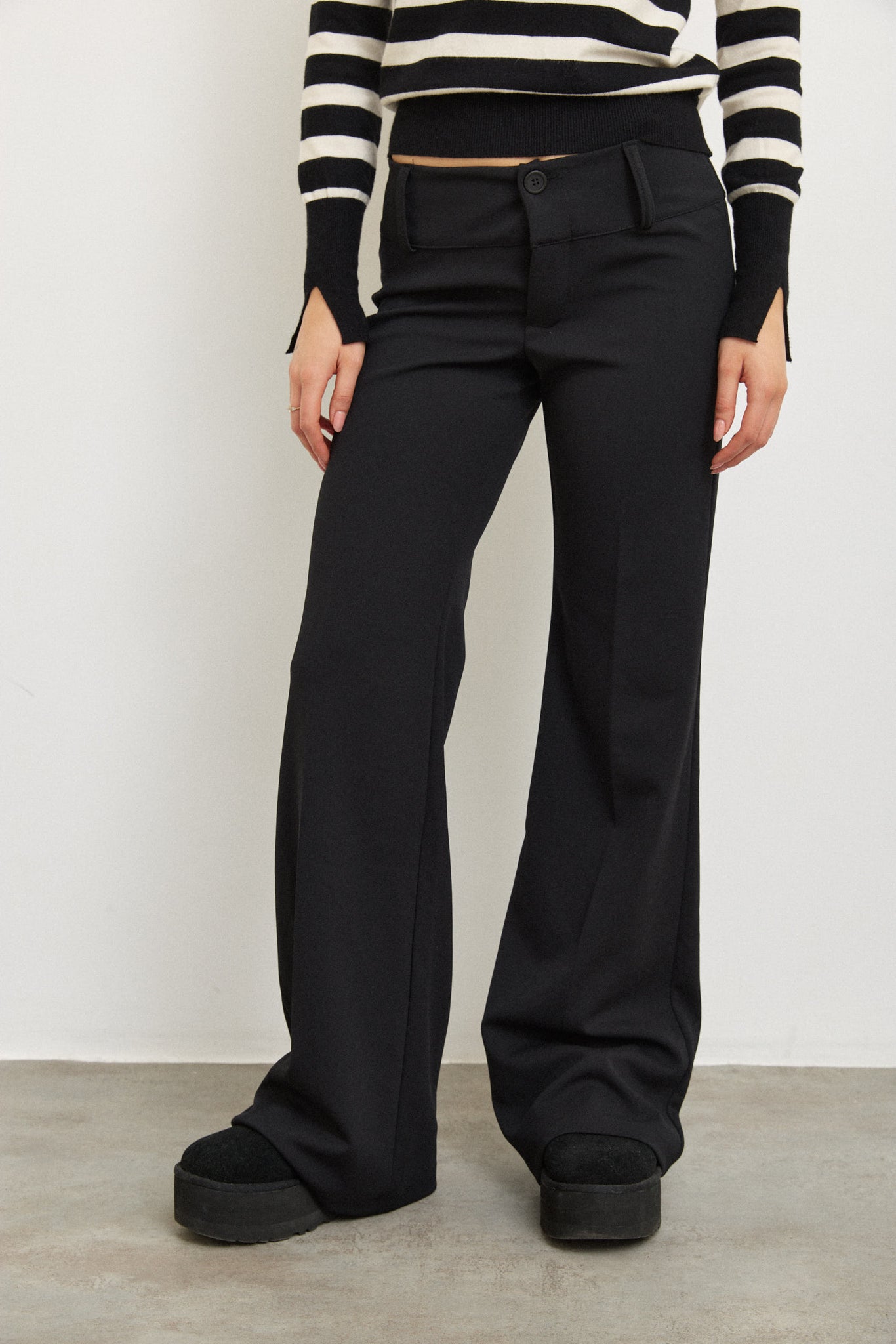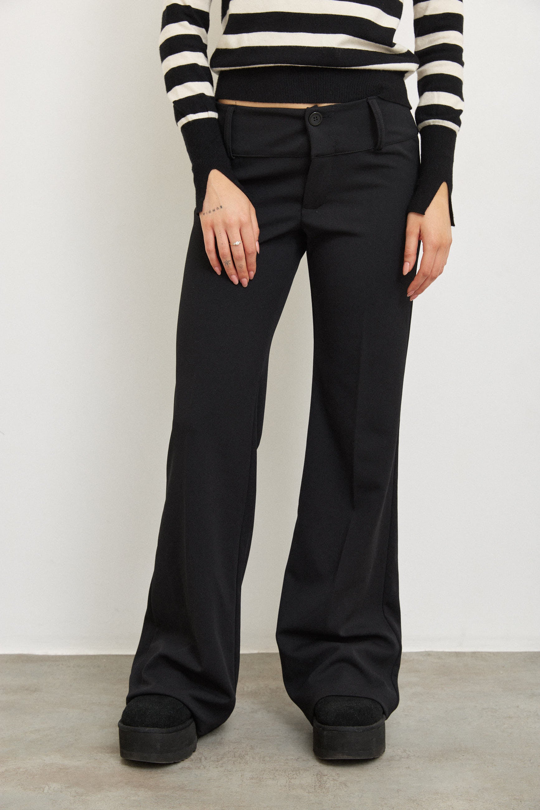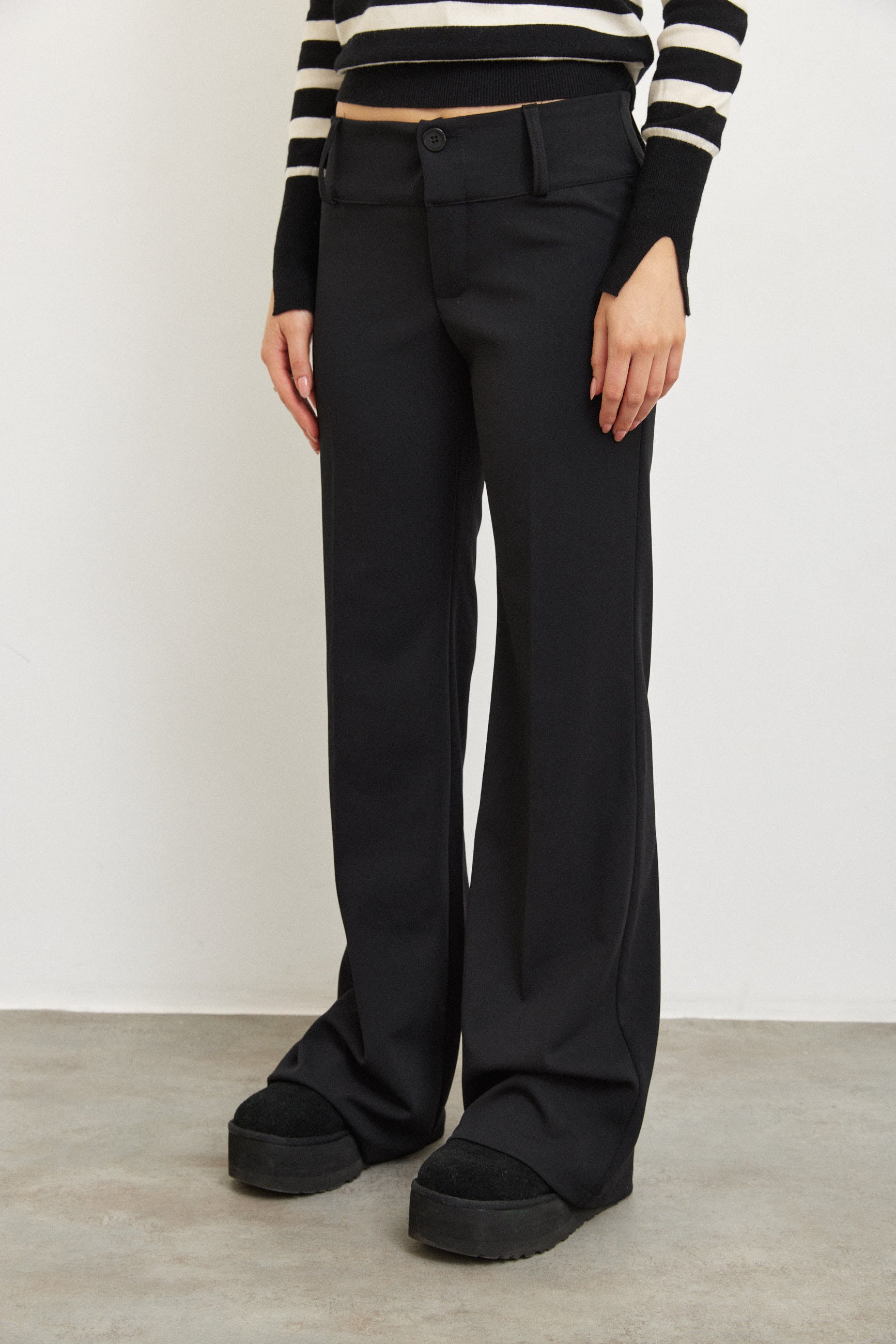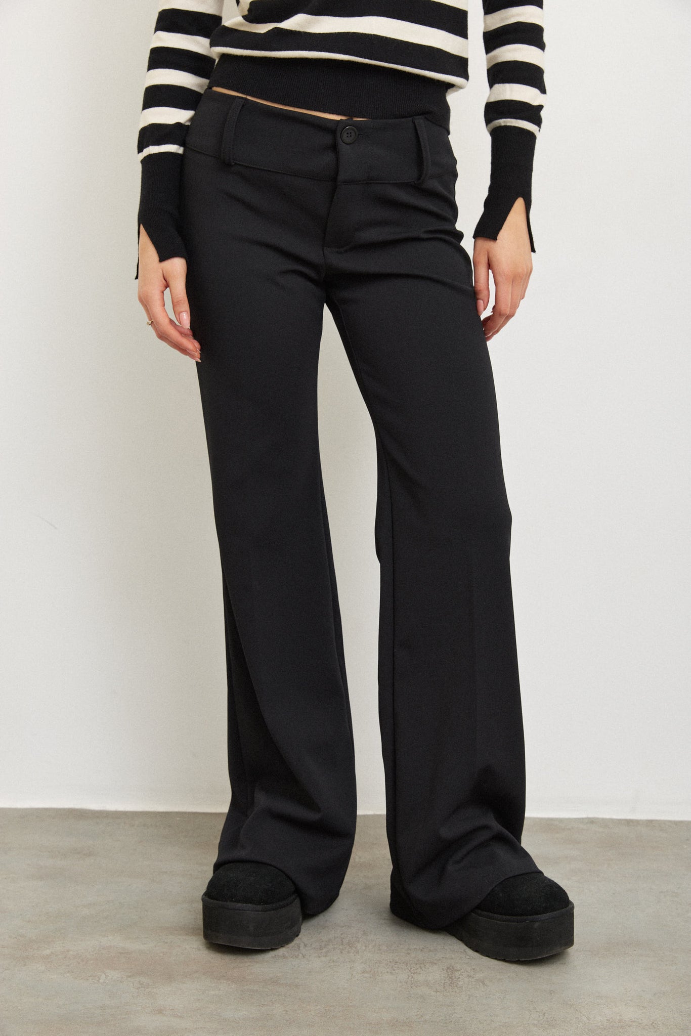 מכנס מחויט בגזרה מחמיאה עם קו מותן מעט נמוך, למראה אלגנטי ומעודכן. עשוי בד איכותי עם נפילה יפה על הגוף, גזרה ישרה שמאריכה את הרגל ויוצרת לוק נקי ומוקפד.