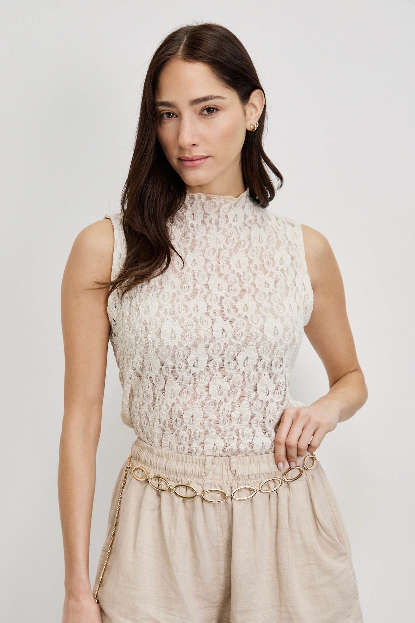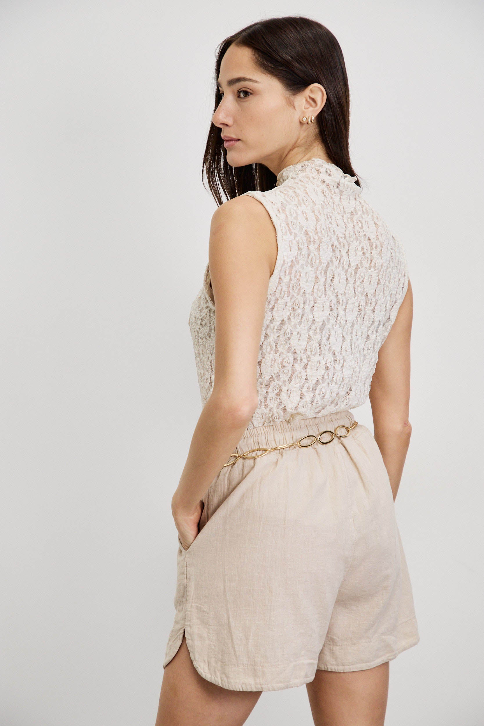חולצת תחרה איטלקית בז
