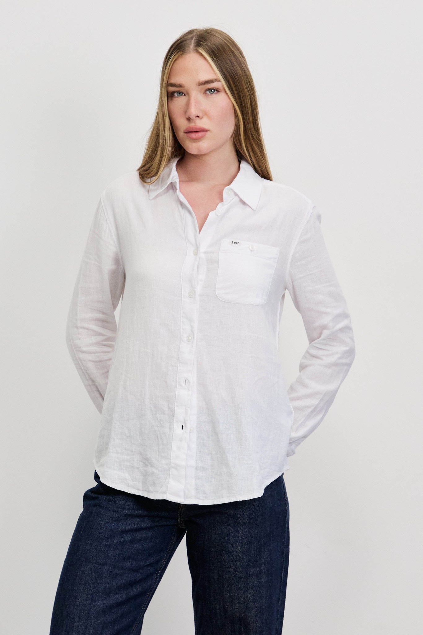 חולצת LEE ALL PURPOSE BRIGHT WHITE - חולצה קלאסית בגזרה מחמיאה על הגוף בצבע לבן זוהר.